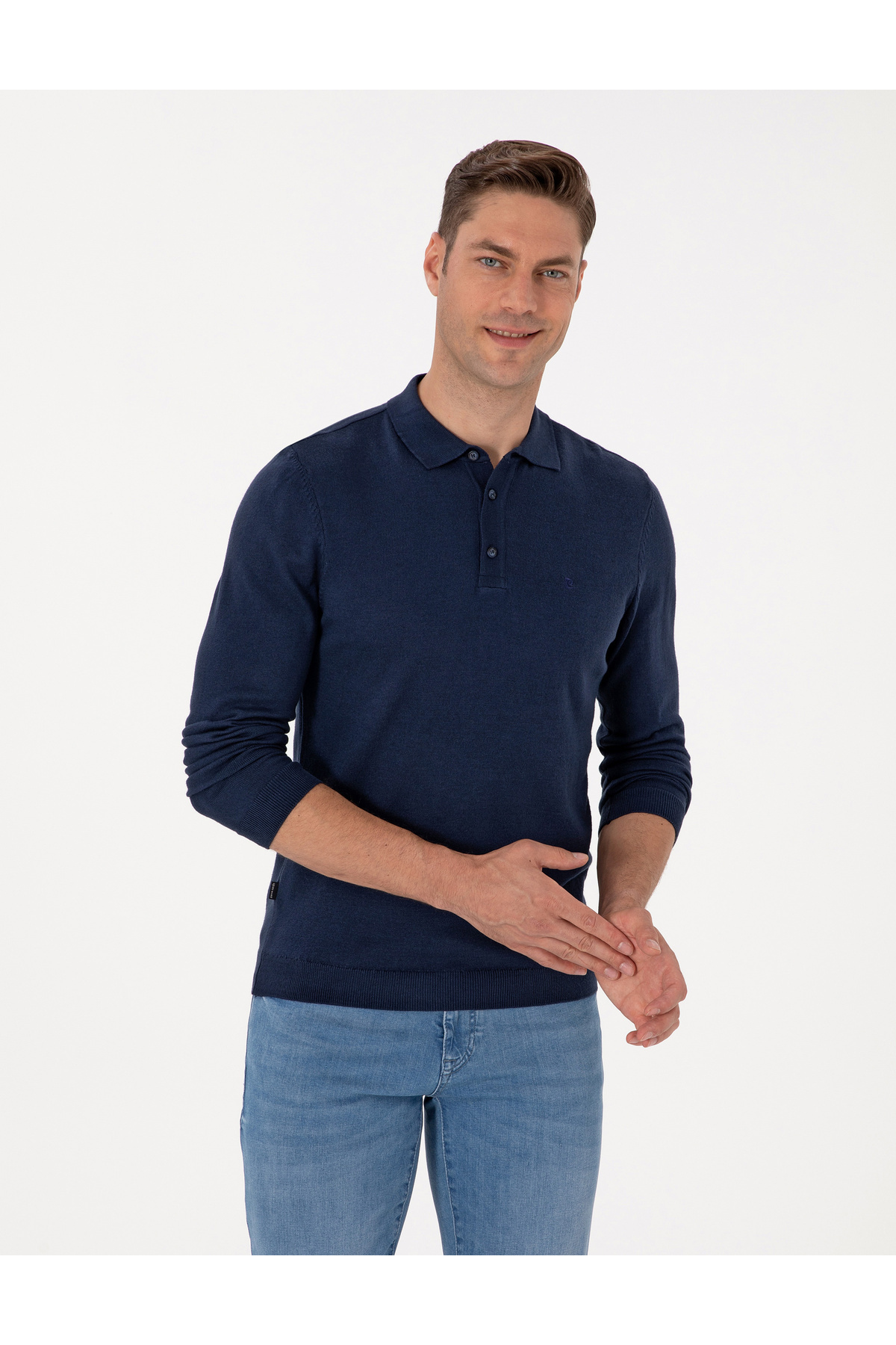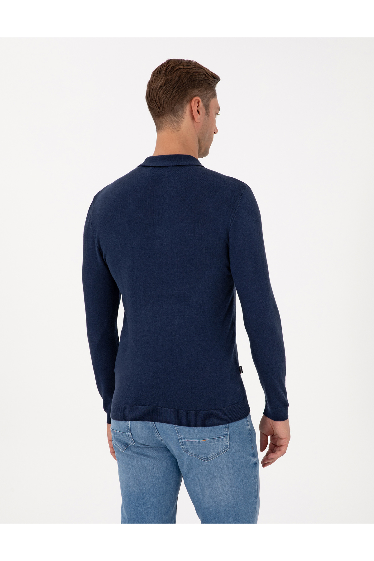 خرید اینترنتی ژاکت بافتنی پایه یقه ای باریک آبی سرمه ای روشن 50314189-VR059 برند پیر کاردین Pierre Cardin اورجینال از Pierre Cardin نمایندگی ترکیه