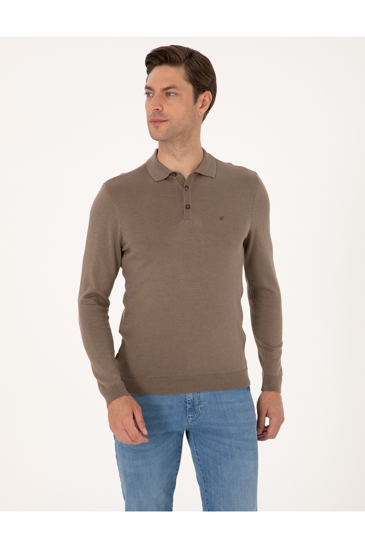 خرید اینترنتی ژاکت بافتنی با یقه پولو باریک Mink Melange 50314189-VR174 برند پیر کاردین Pierre Cardin اورجینال از Pierre Cardin نمایندگی ترکیه