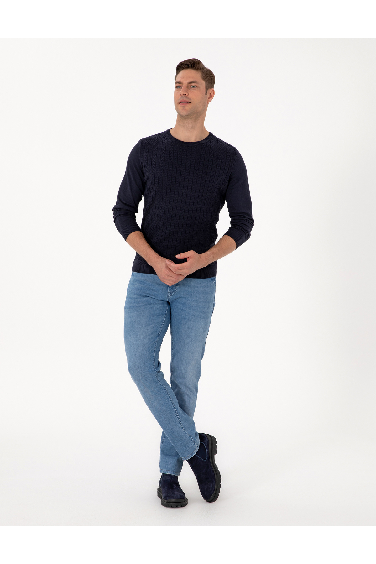 خرید اینترنتی ژاکت بافتنی یقه باریک آبی ناوی 50315717-VR033 برند پیر کاردین Pierre Cardin اورجینال از Pierre Cardin نمایندگی ترکیه
