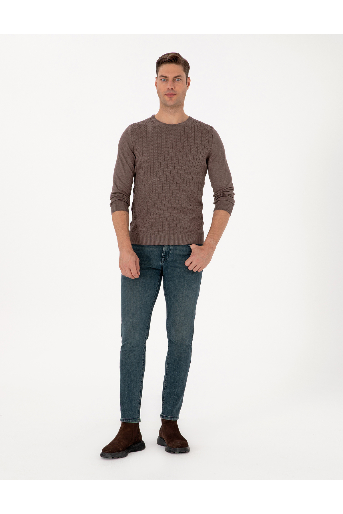 خرید اینترنتی ژاکت بافتنی یقه Mink Slim Fit Crew 50315717-VR052 برند پیر کاردین Pierre Cardin اورجینال از Pierre Cardin نمایندگی ترکیه