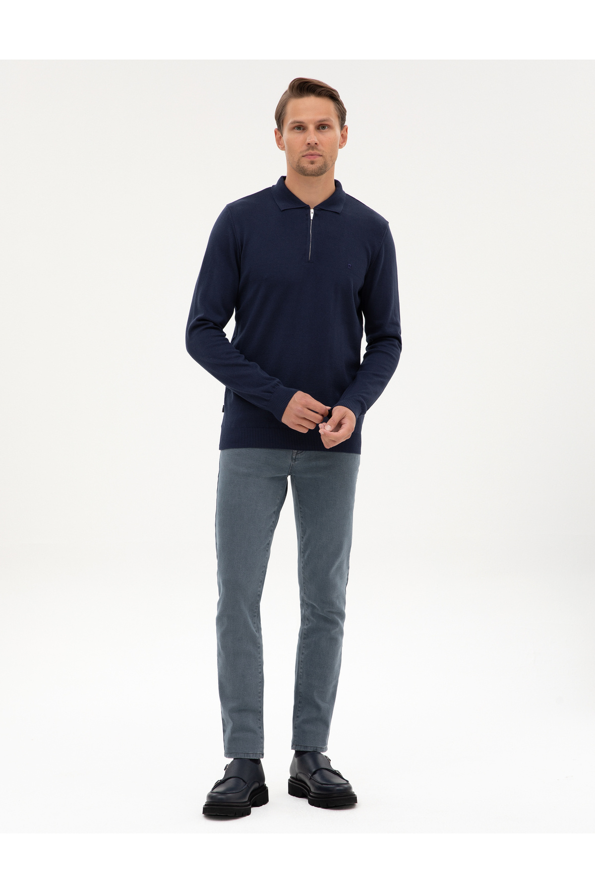 خرید اینترنتی ژاکت بافتنی پایه زیپ دار با یقه پولو باریک آبی نارنگی 50314191-VR059 برند پیر کاردین Pierre Cardin اورجینال از Pierre Cardin نمایندگی ترکیه