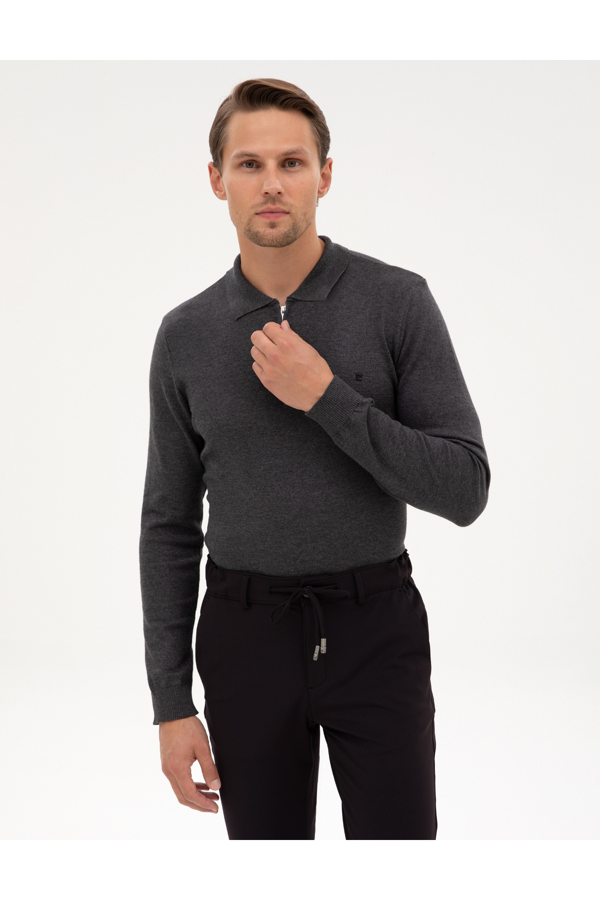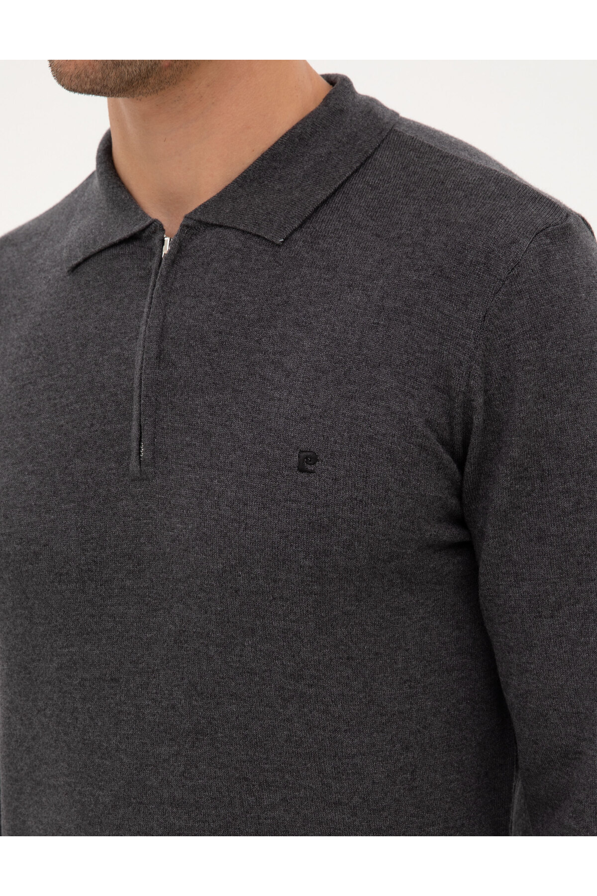 خرید اینترنتی ژاکت بافتنی پایه زیپ دار آنتراسیت ملانژ باریک یقه پولو 50314191-VR081 برند پیر کاردین Pierre Cardin اورجینال از Pierre Cardin نمایندگی ترکیه