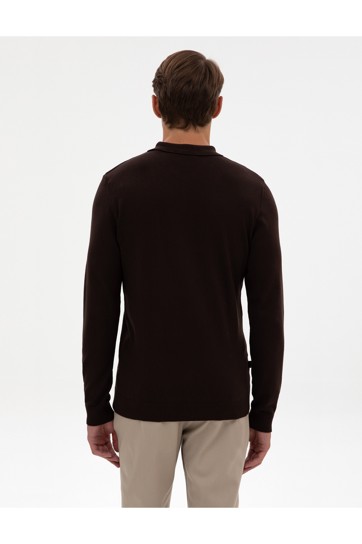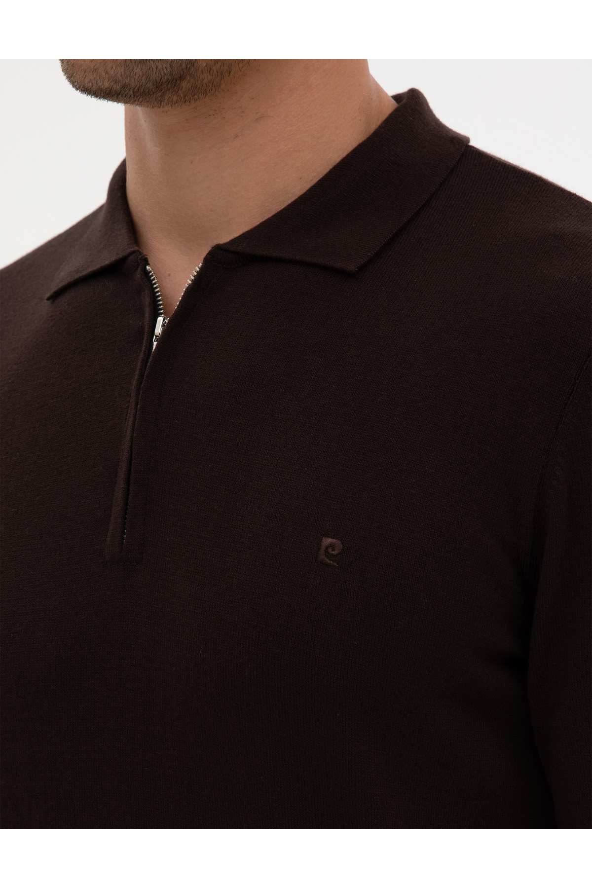 خرید اینترنتی ژاکت بافتنی پایه زیپ دار یقه ای باریک قهوه ای تیره 50314191-VR084 برند پیر کاردین Pierre Cardin اورجینال از Pierre Cardin نمایندگی ترکیه