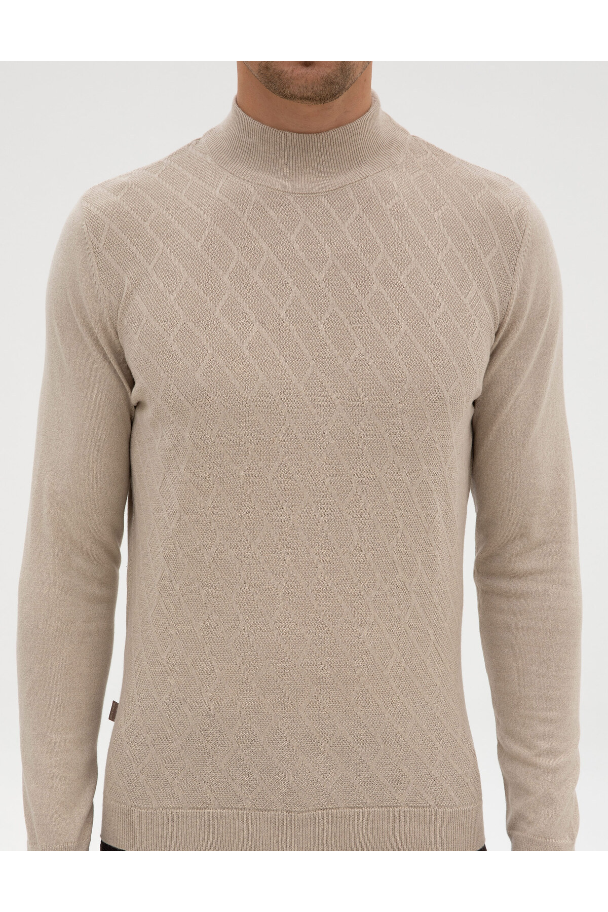 خرید اینترنتی ژاکت بافتنی نیمه یقه اسلیم فیت Sand Melange 50318128-VR123 برند پیر کاردین Pierre Cardin اورجینال از Pierre Cardin نمایندگی ترکیه