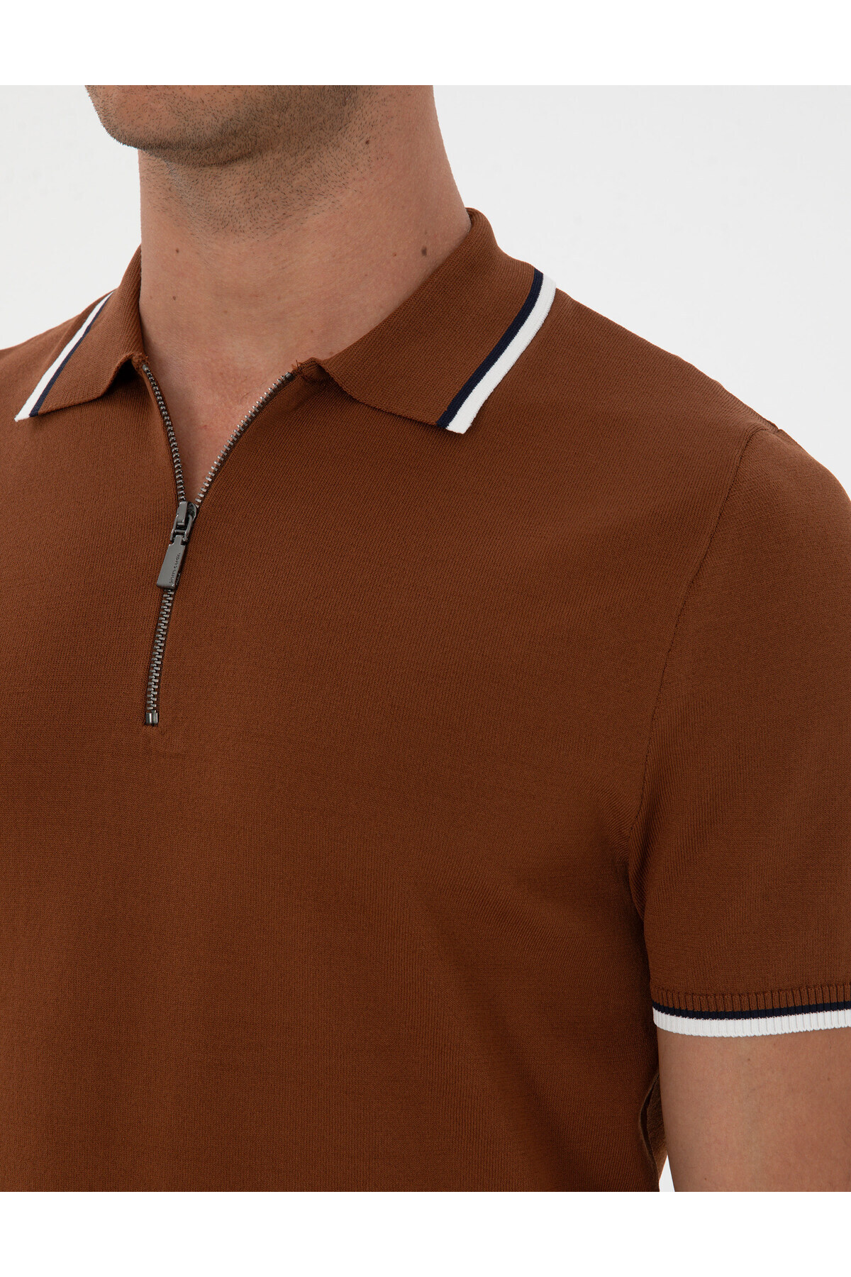 خرید اینترنتی ژاکت بافتنی با یقه پولو باریک قهوه ای 50315745-VR040 برند پیر کاردین Pierre Cardin اورجینال از Pierre Cardin نمایندگی ترکیه