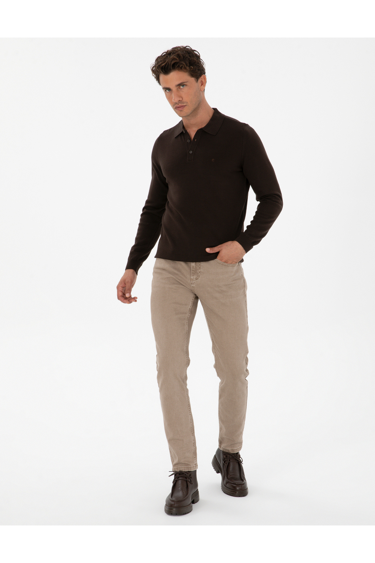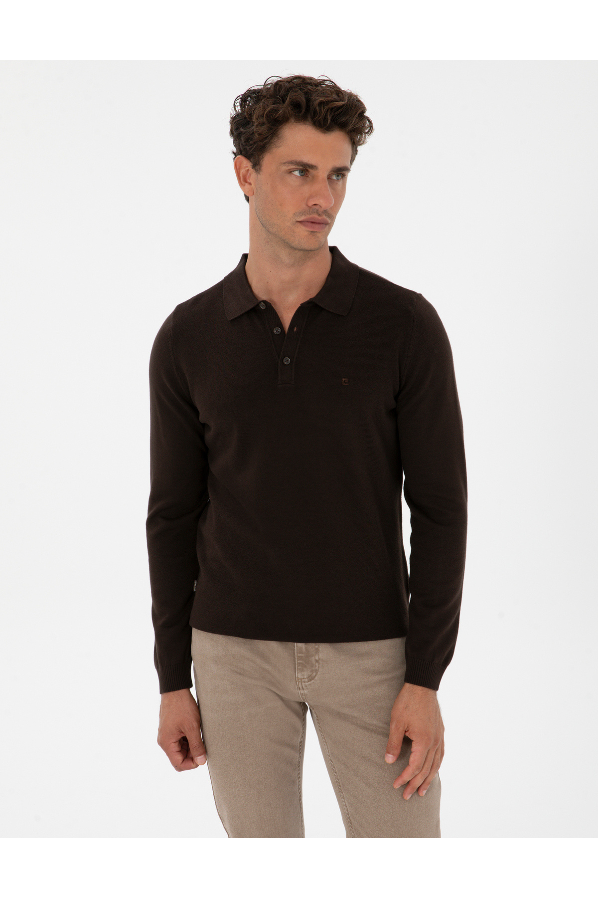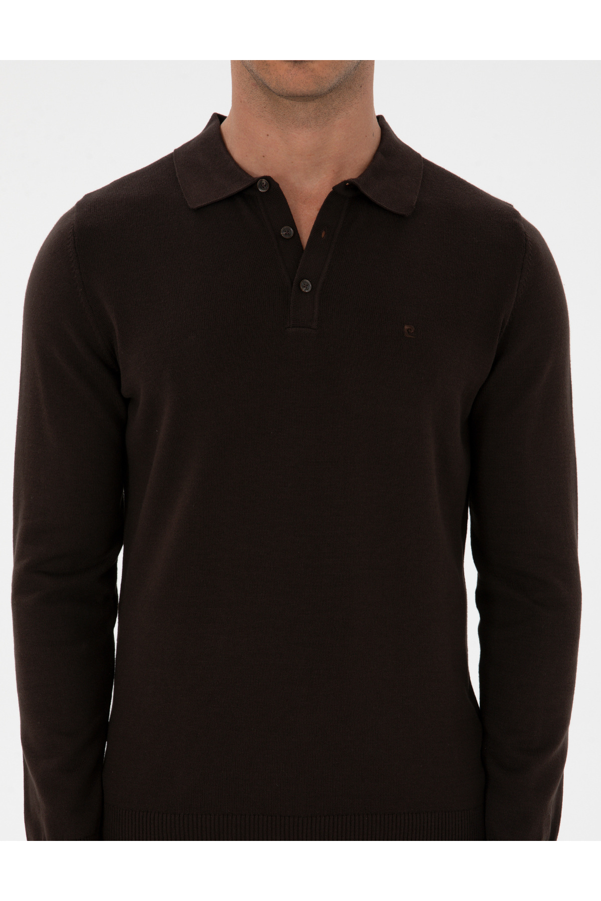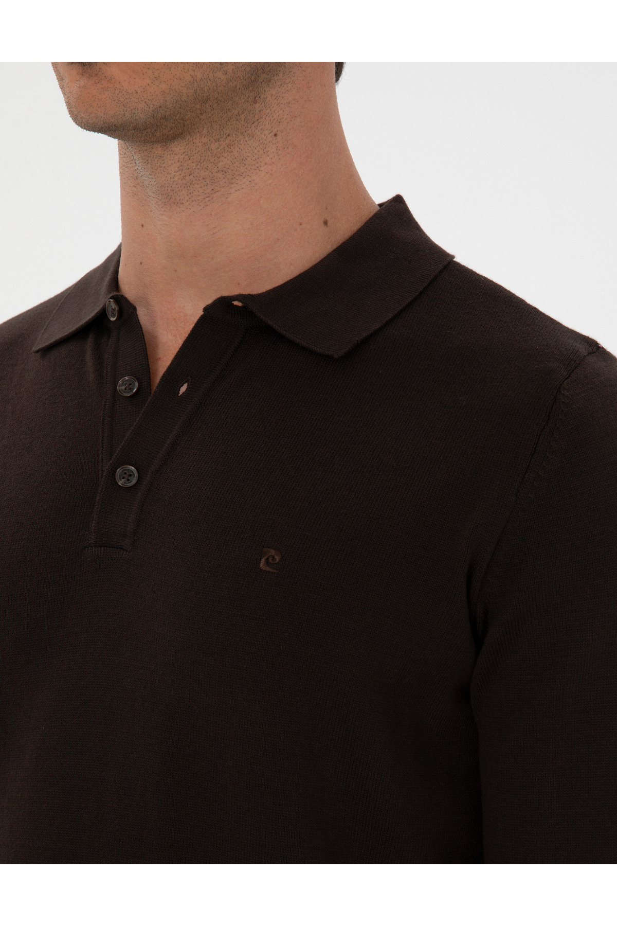 خرید اینترنتی ژاکت بافتنی پایه یقه پولو باریک قهوه ای تیره 50315405-VR084 برند پیر کاردین Pierre Cardin اورجینال از Pierre Cardin نمایندگی ترکیه