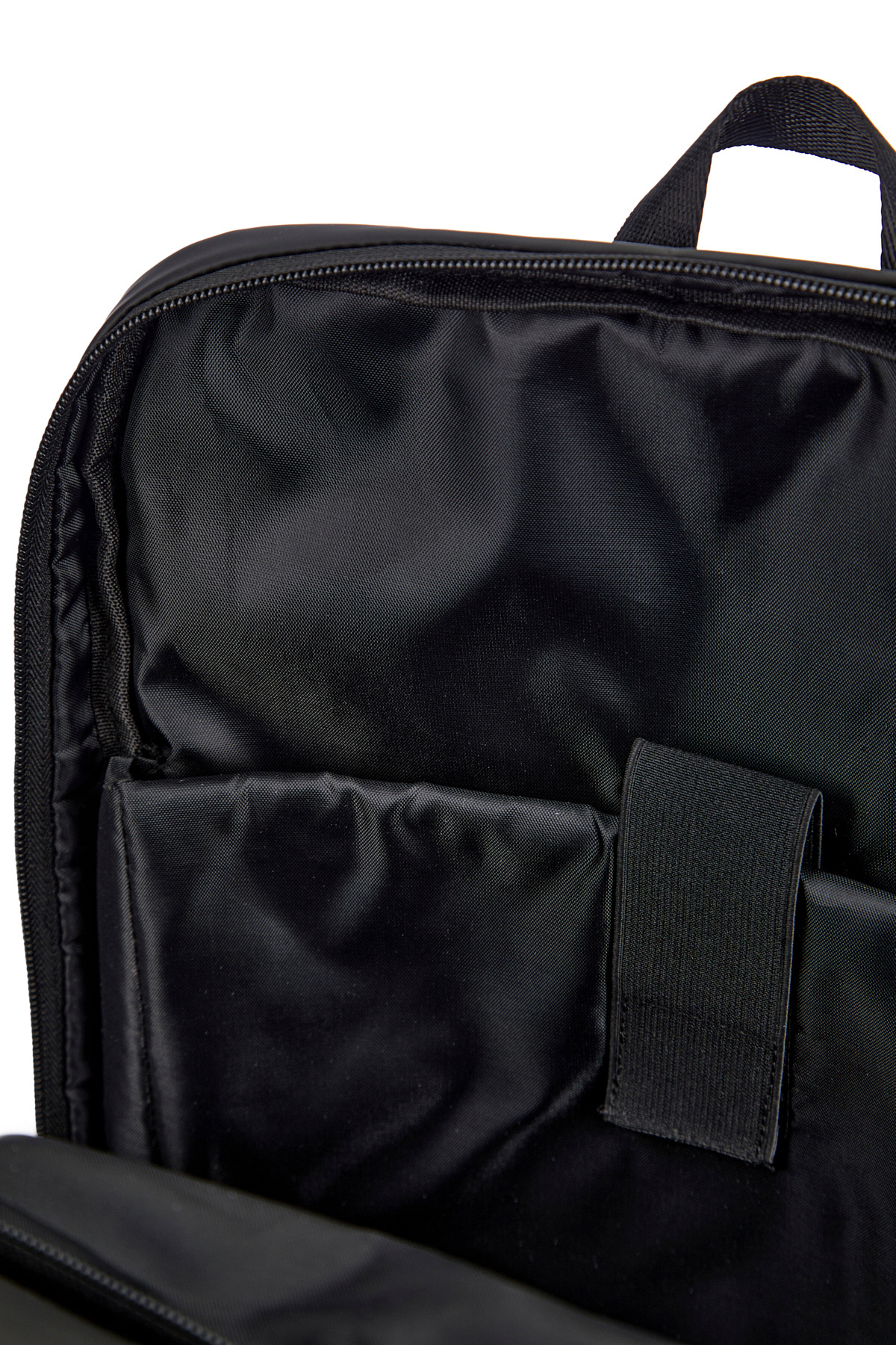 دو محفظه اصلی زیپ دار. محفظه اصلی شامل یک خروجی کابل شارژ USB است. محفظه اصلی شامل یک محفظه لپ تاپ نیز می باشد. محفظه اصلی دارای یک جیب زیپ دار نیز می باشد. جلو دارای یک جیب زیپ دار پشت دارای یک پد پشتی است. پشت دارای قفسه چمدان است.