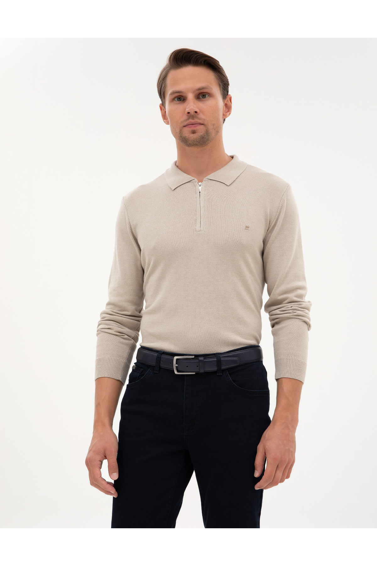 خرید اینترنتی Sand Melange Slim Fit یقه پولو زیپ ژاکت پایه بافتنی 50314191-VR123 برند پیر کاردین Pierre Cardin اورجینال از Pierre Cardin نمایندگی ترکیه
