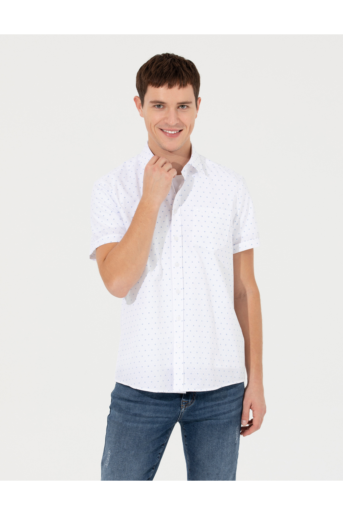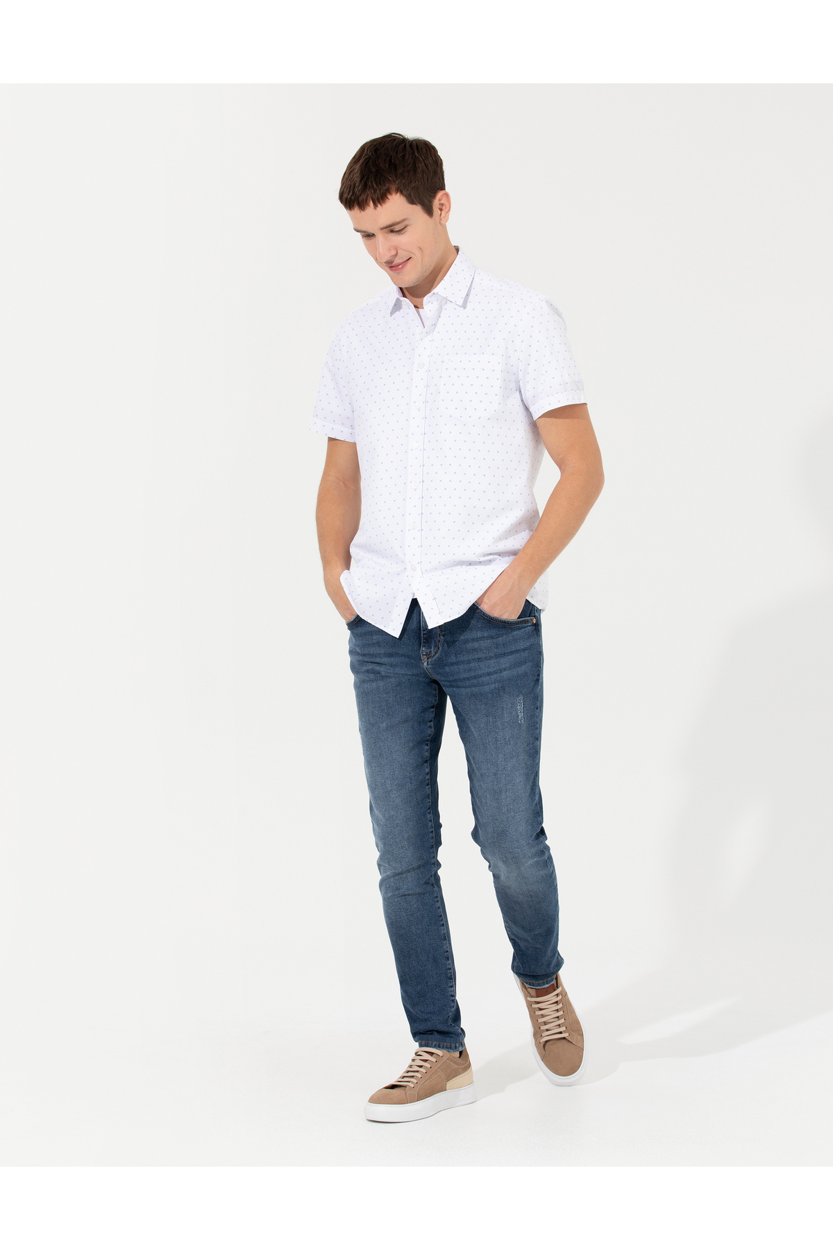 خرید اینترنتی پیراهن آستین کوتاه آبی معمولی 50252459-VR033 برند پیر کاردین Pierre Cardin اورجینال از Pierre Cardin نمایندگی ترکیه