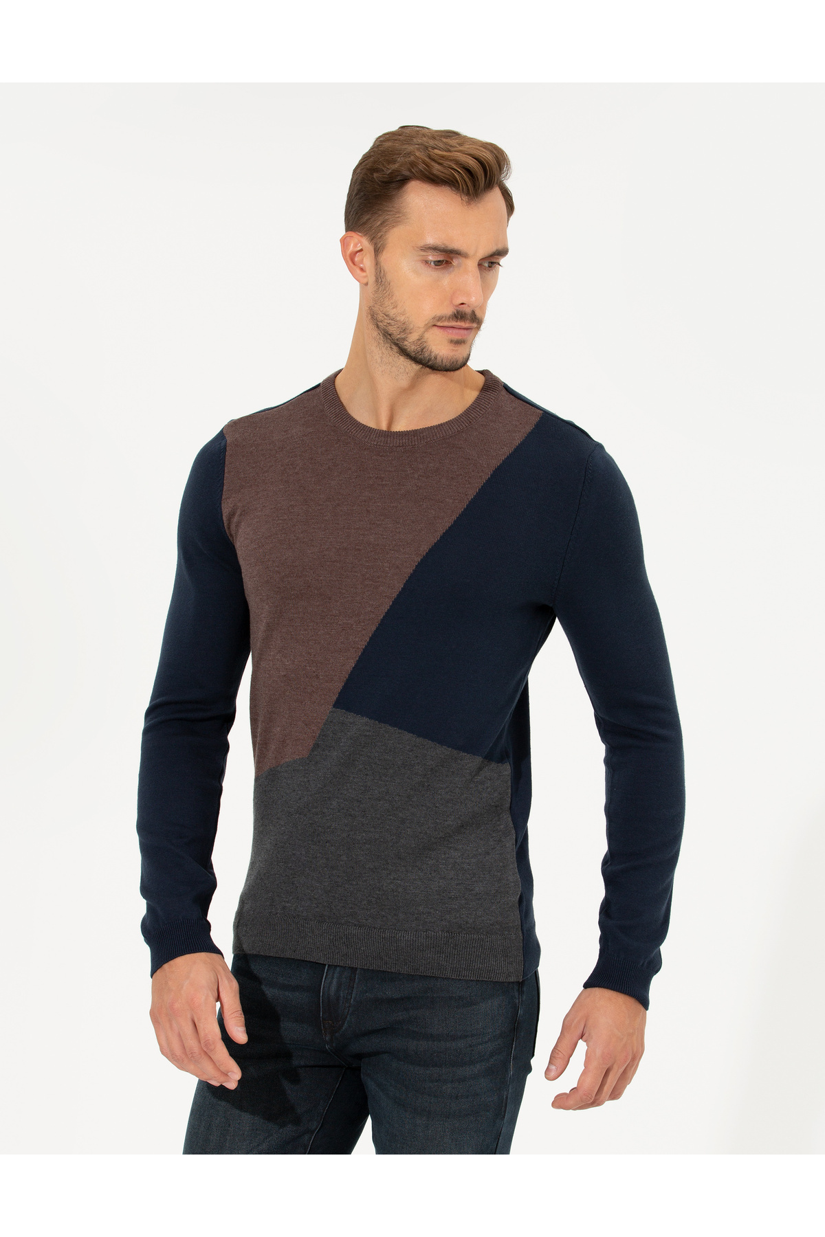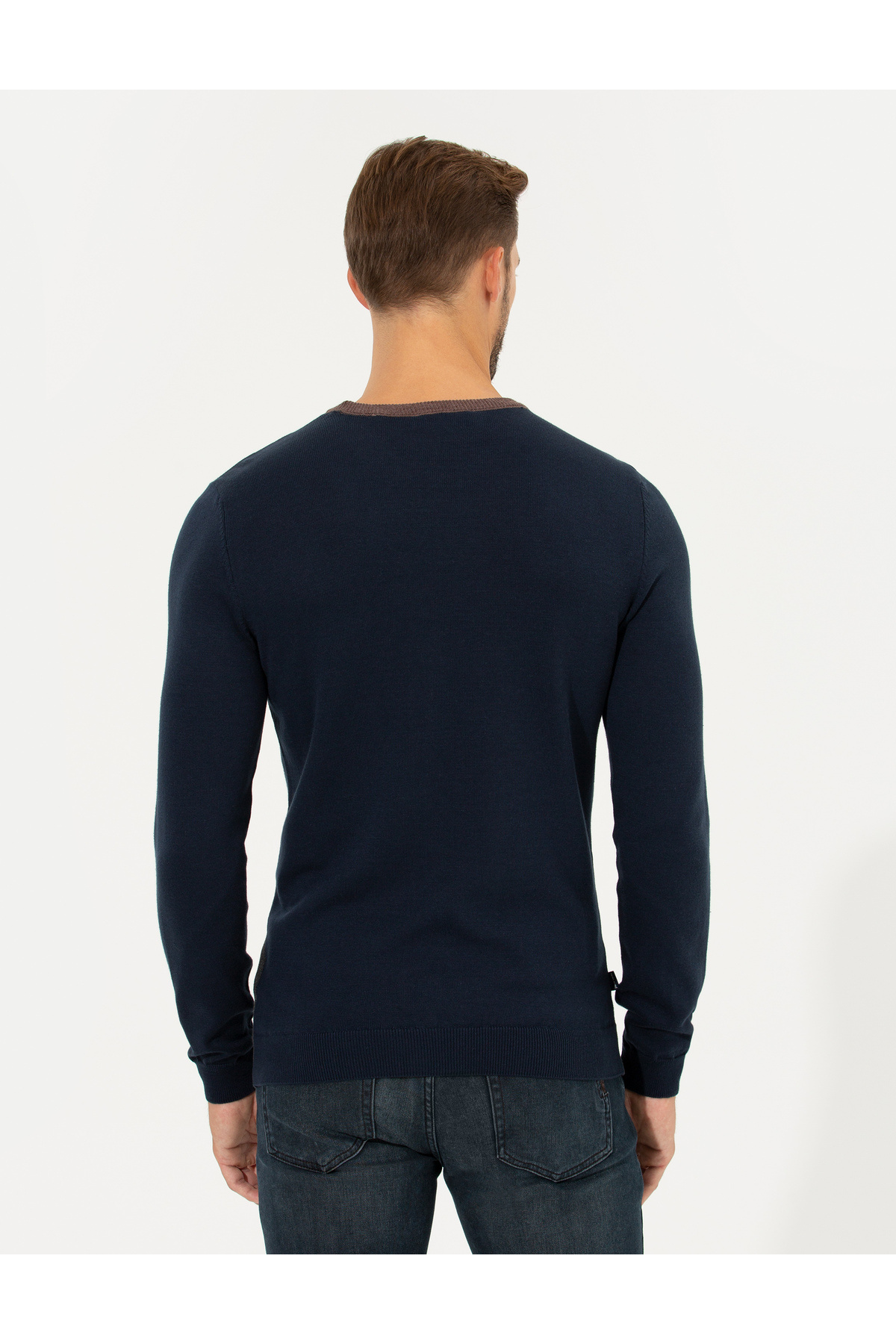 خرید اینترنتی ژاکت بافتنی یقه باریک آبی ناوی 50261154-VR033 برند پیر کاردین Pierre Cardin اورجینال از BG e-ticaret نمایندگی ترکیه