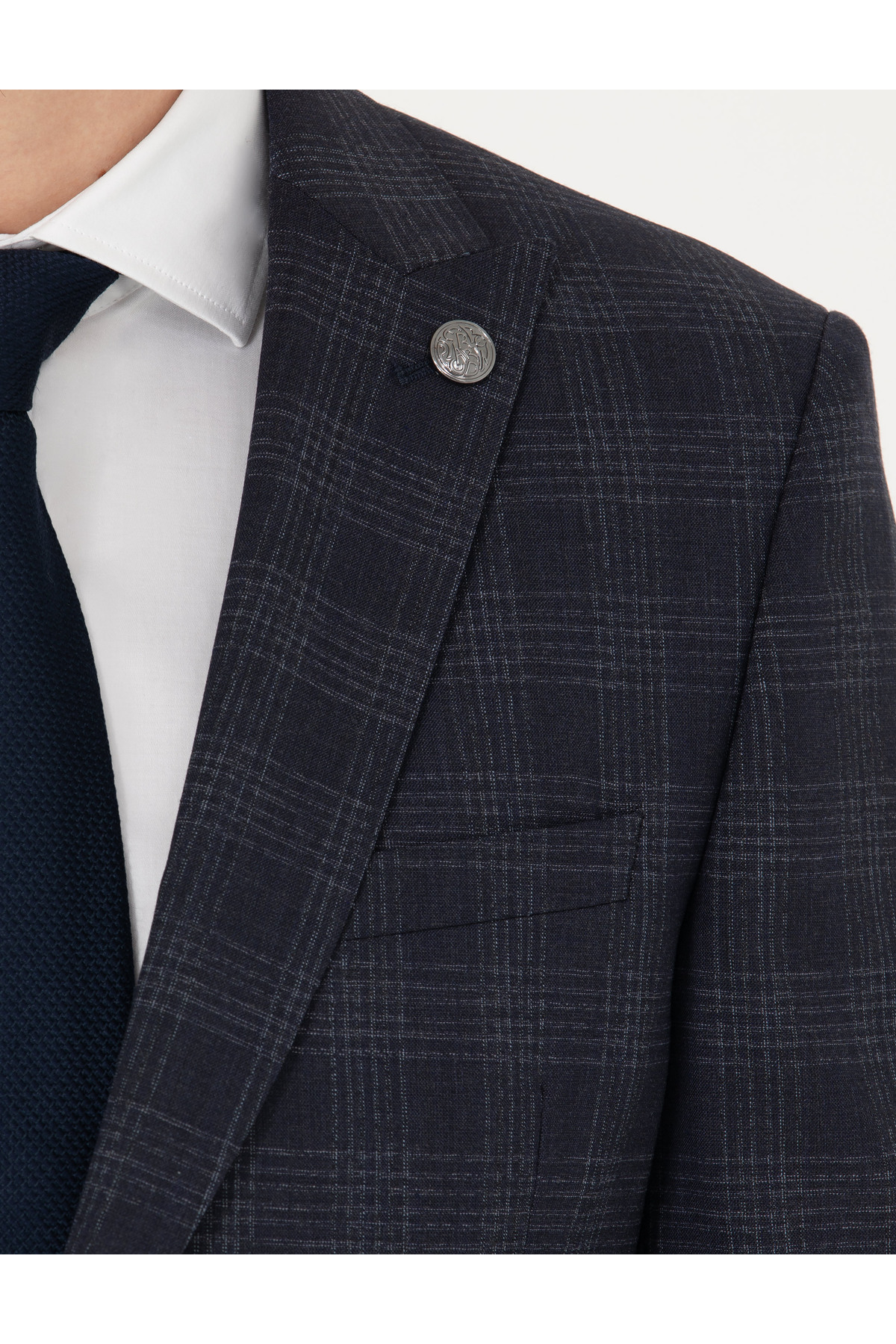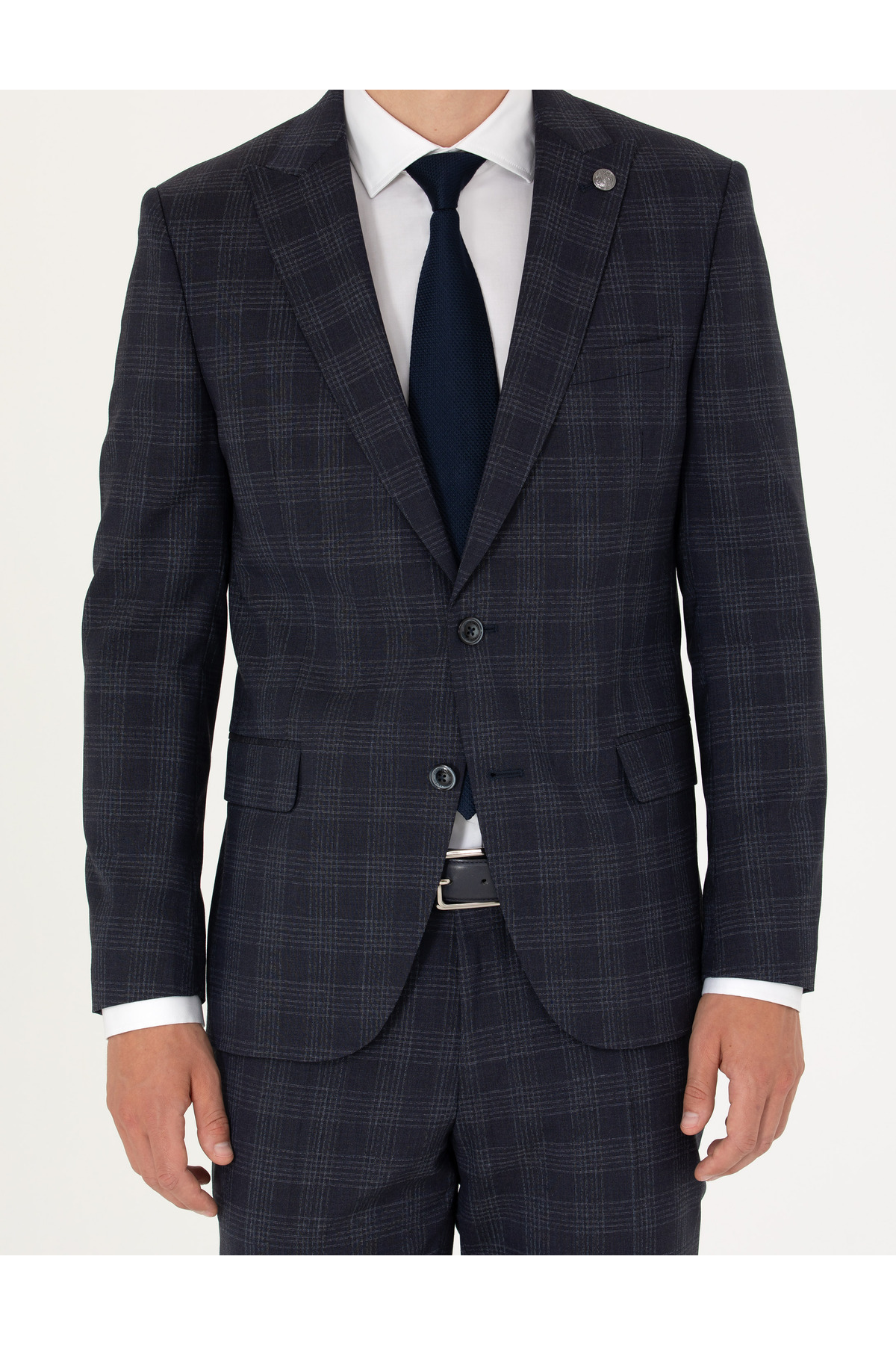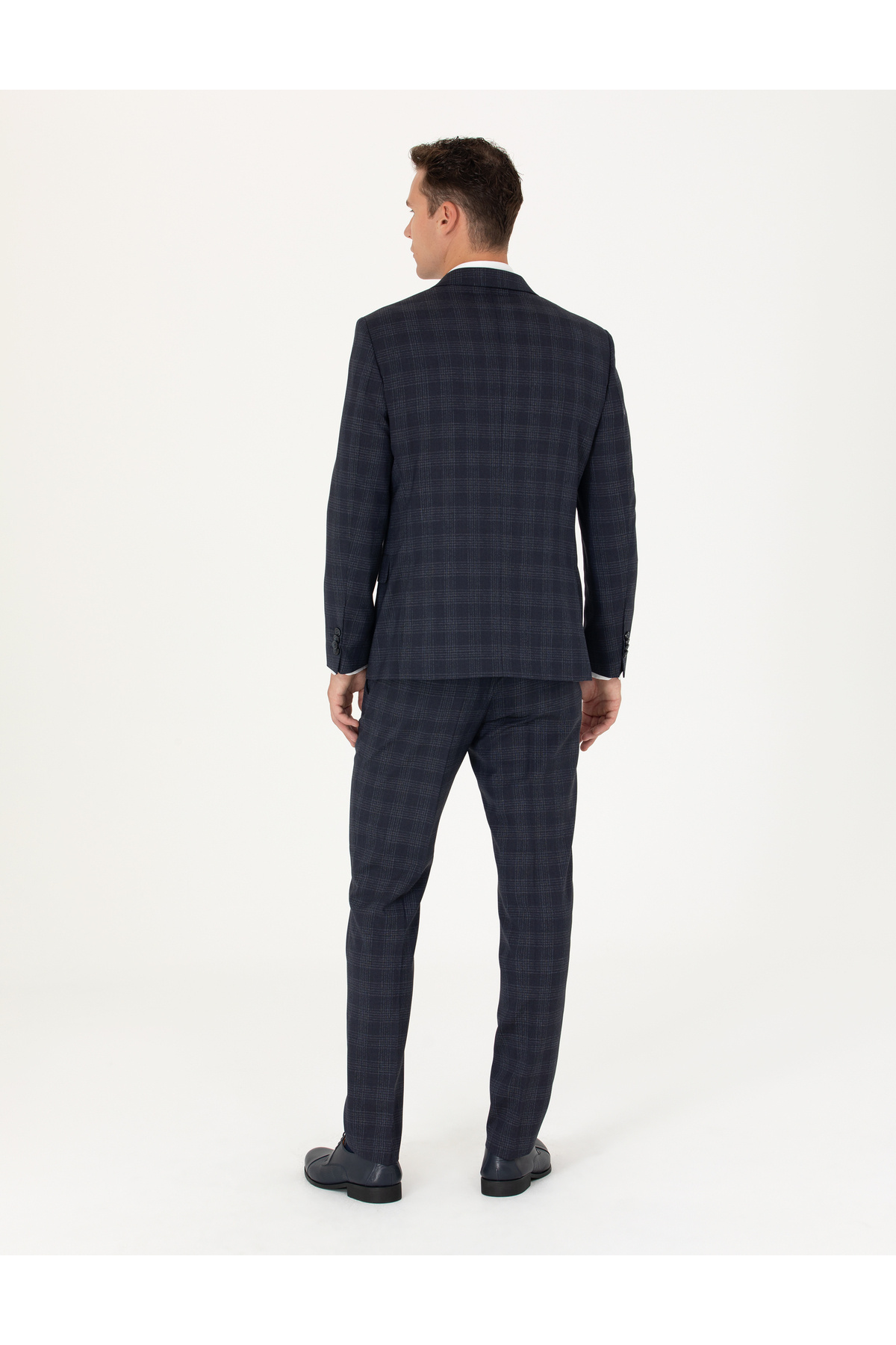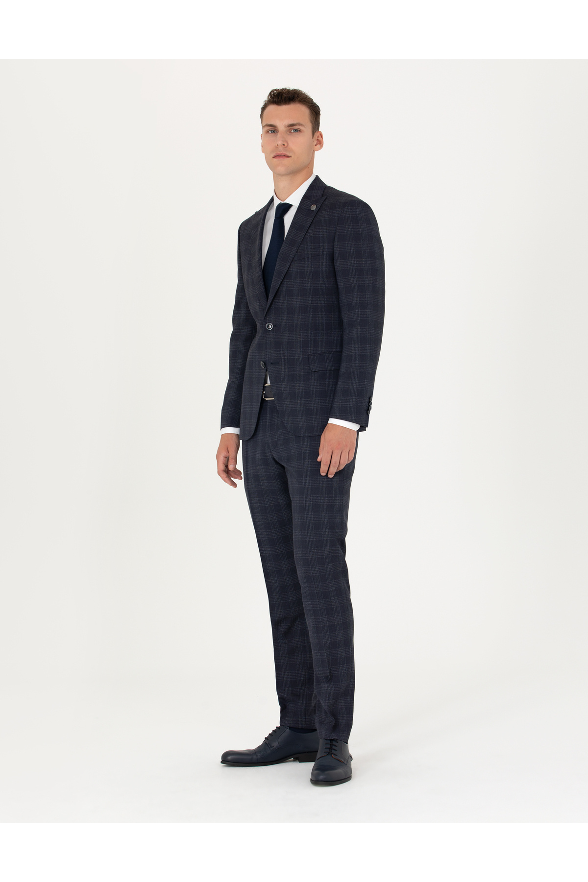 خرید اینترنتی کت و شلوار ترکیبی پشمی بسیار باریک شطرنجی آبی سرمه ای 50272766-VR033 برند پیر کاردین Pierre Cardin اورجینال از Pierre Cardin نمایندگی ترکیه