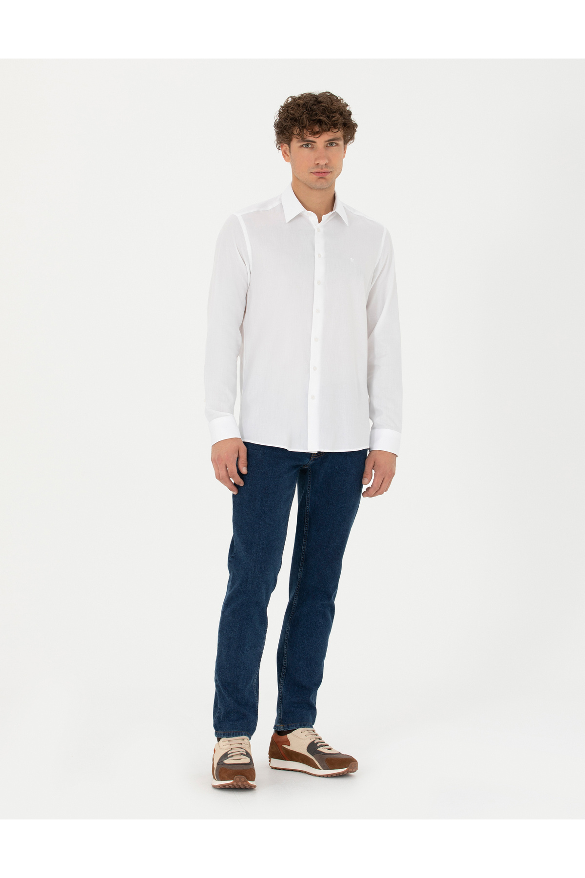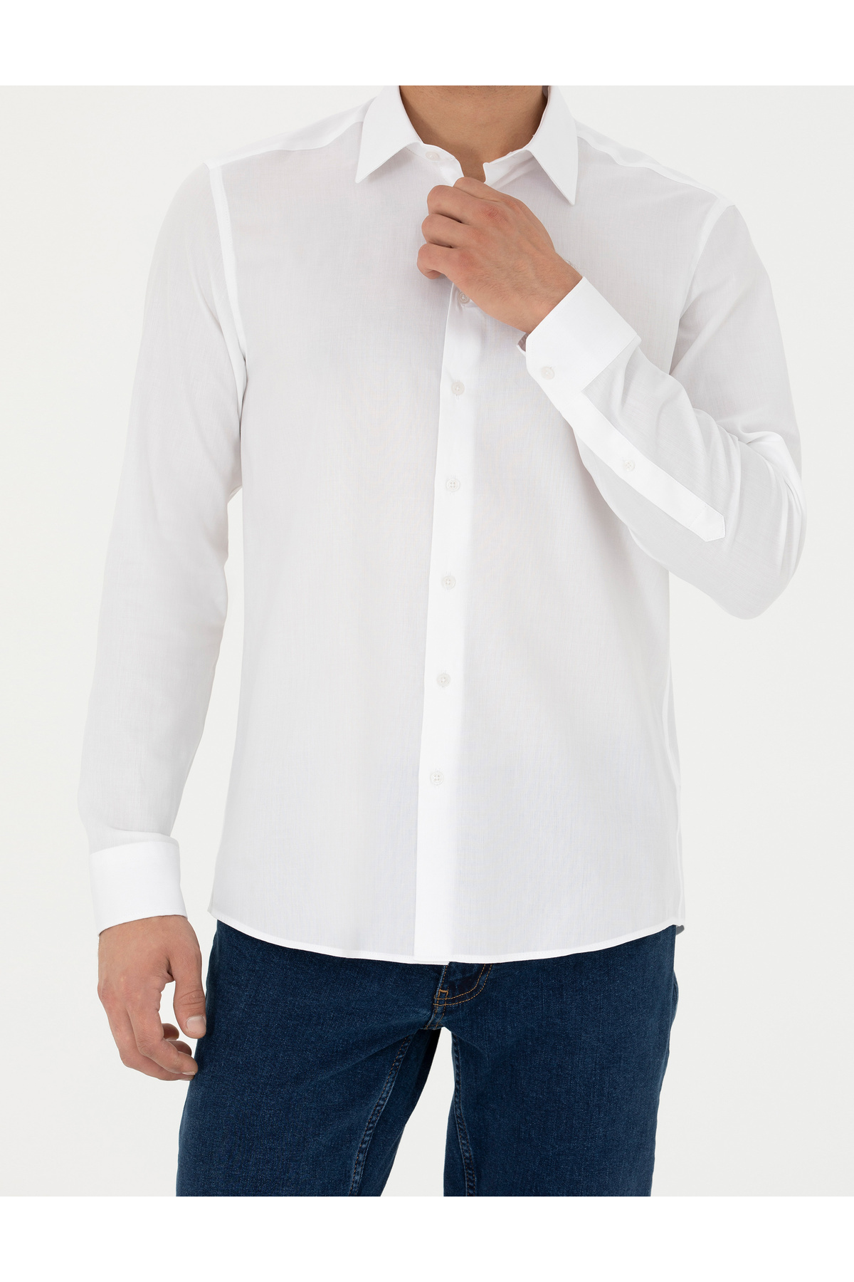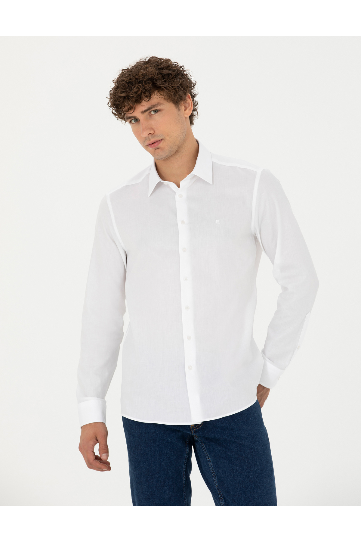 خرید اینترنتی پیراهن آستین بلند سفید باریک فیت 50277645-VR013 برند پیر کاردین Pierre Cardin اورجینال از Pierre Cardin نمایندگی ترکیه