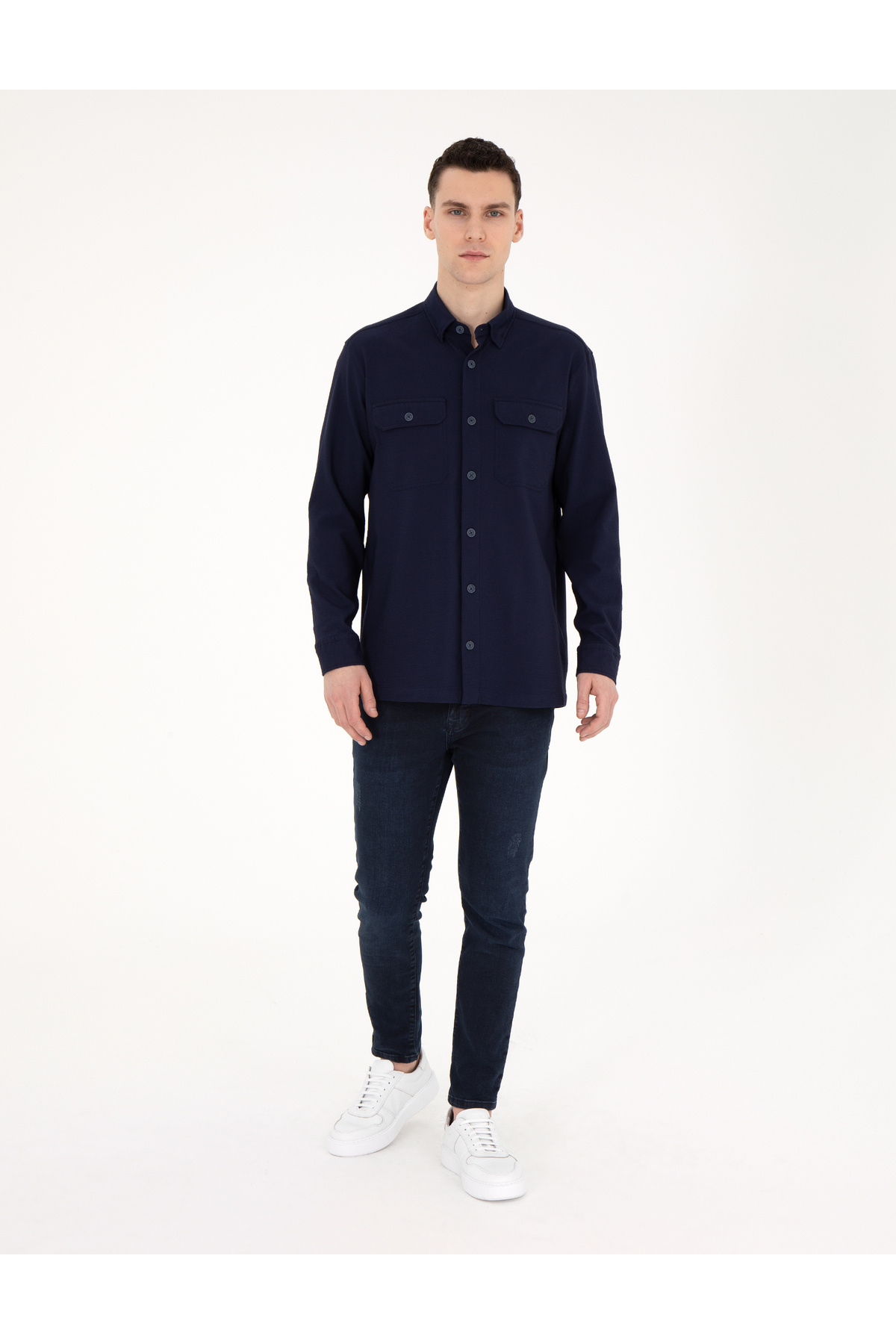 خرید اینترنتی پیراهن آستین بلند آبی سرمه ای 50283489-VR033 برند پیر کاردین Pierre Cardin اورجینال از Pierre Cardin نمایندگی ترکیه