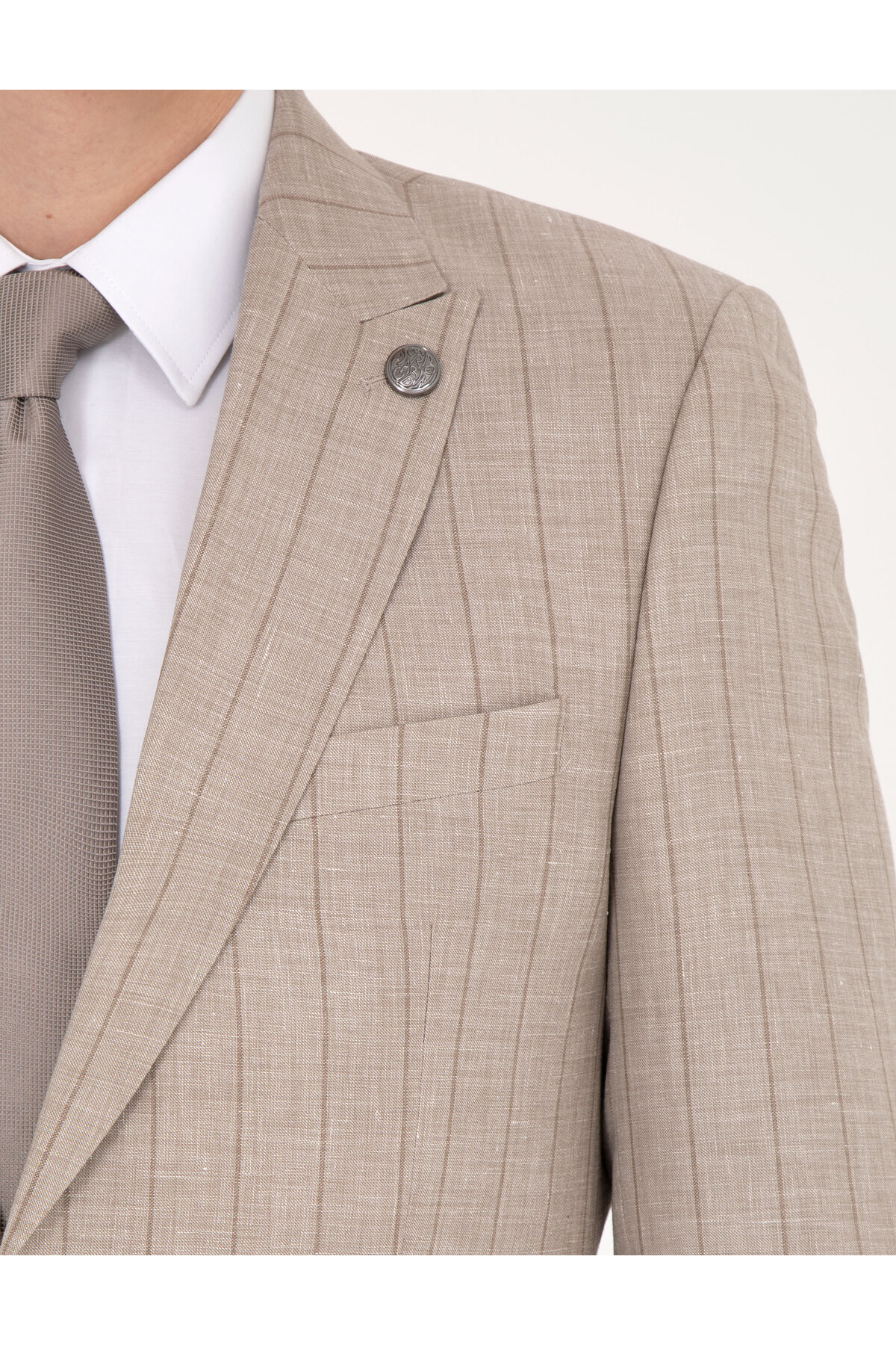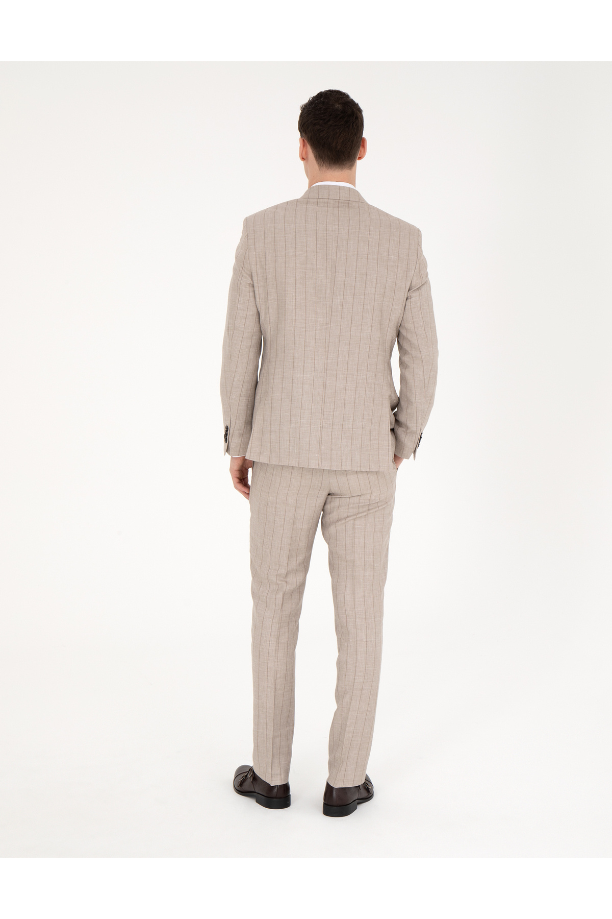 خرید اینترنتی کت و شلوار پشمی باریک بژ ترکیبی راه راه 50285350-VR011 برند پیر کاردین Pierre Cardin اورجینال از Pierre Cardin نمایندگی ترکیه
