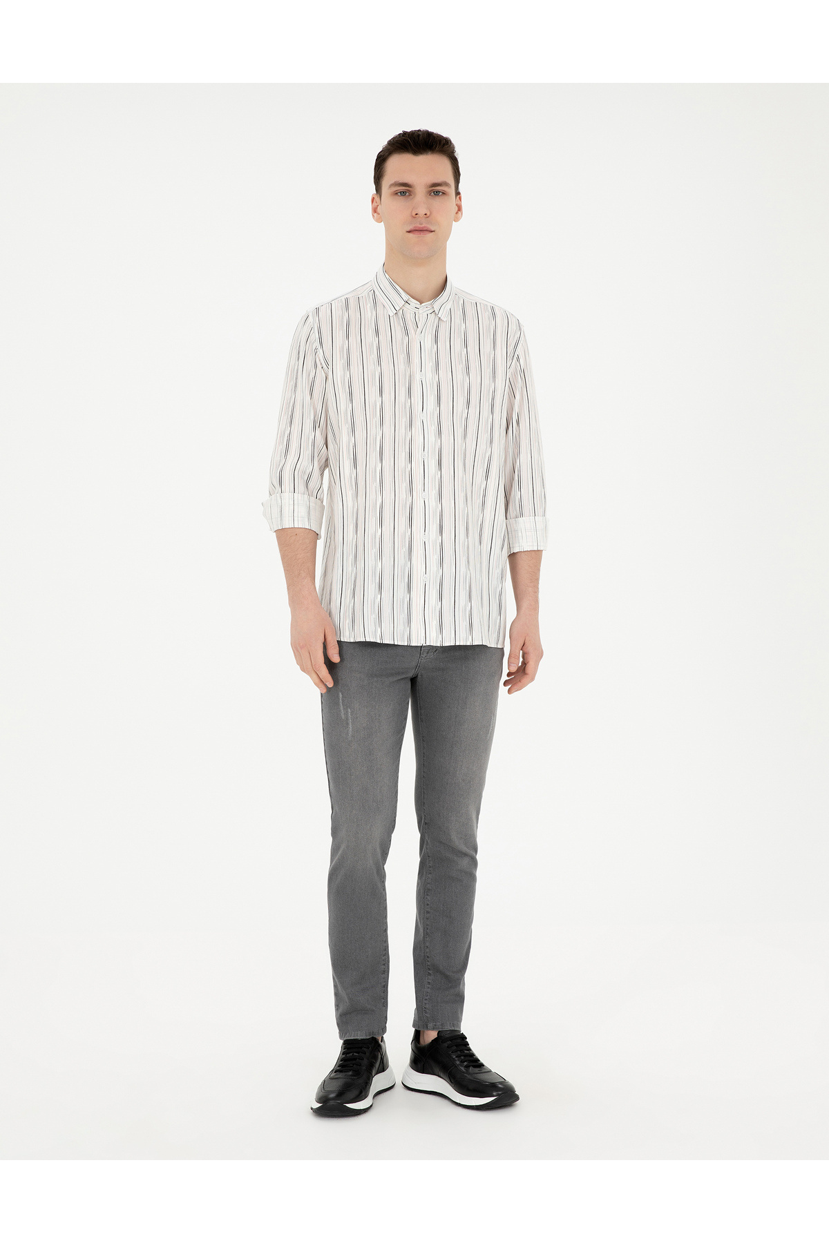 خرید اینترنتی پیراهن آستین بلند کتانی ترکیبی باریک 50283508-VR046 برند پیر کاردین Pierre Cardin اورجینال از Pierre Cardin نمایندگی ترکیه