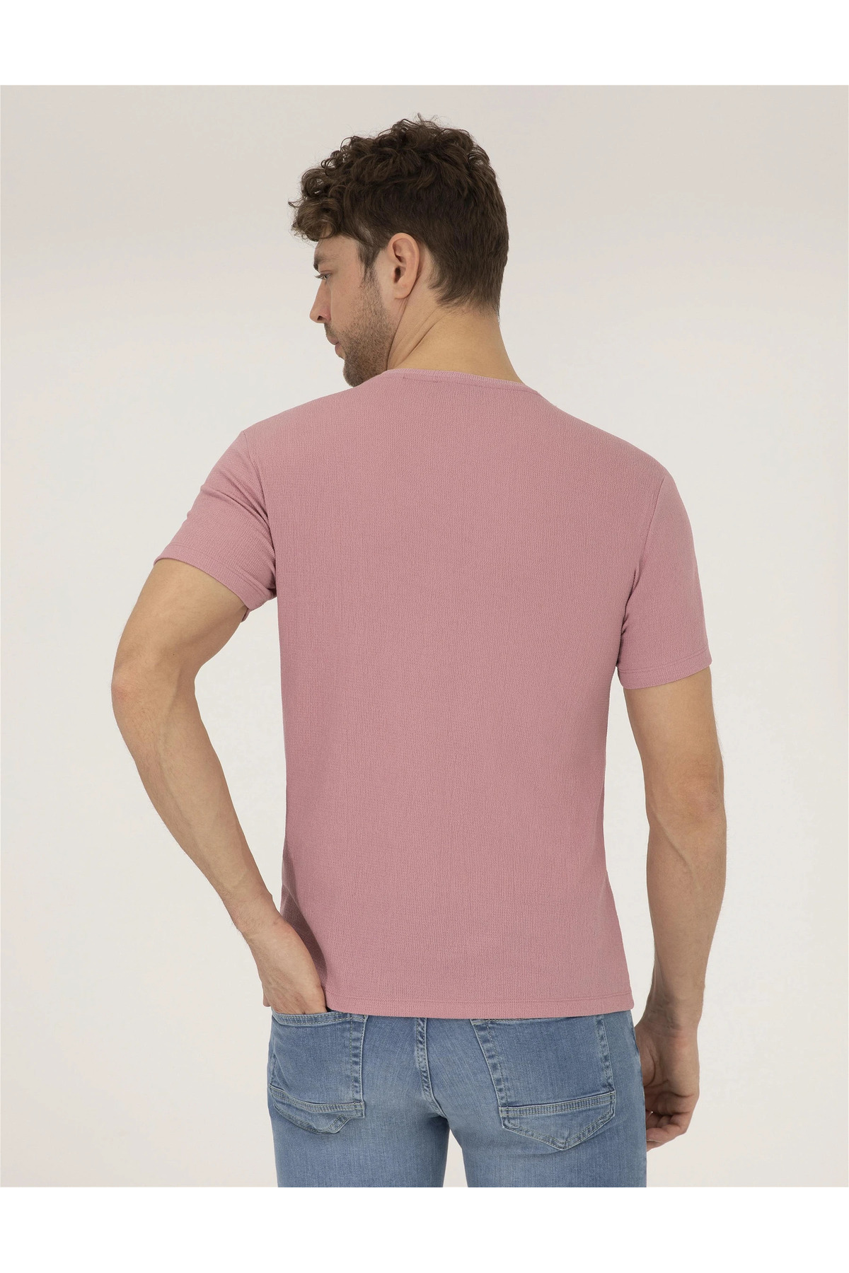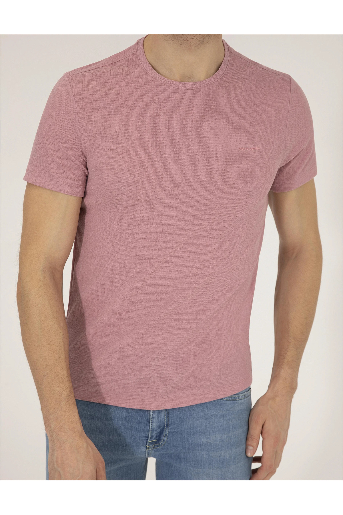 خرید اینترنتی تی شرت یقه خدمه بافت باریک مردانه-رز گرد و خاکی برند پیر کاردین Pierre Cardin اورجینال از MarkaPlus نمایندگی ترکیه