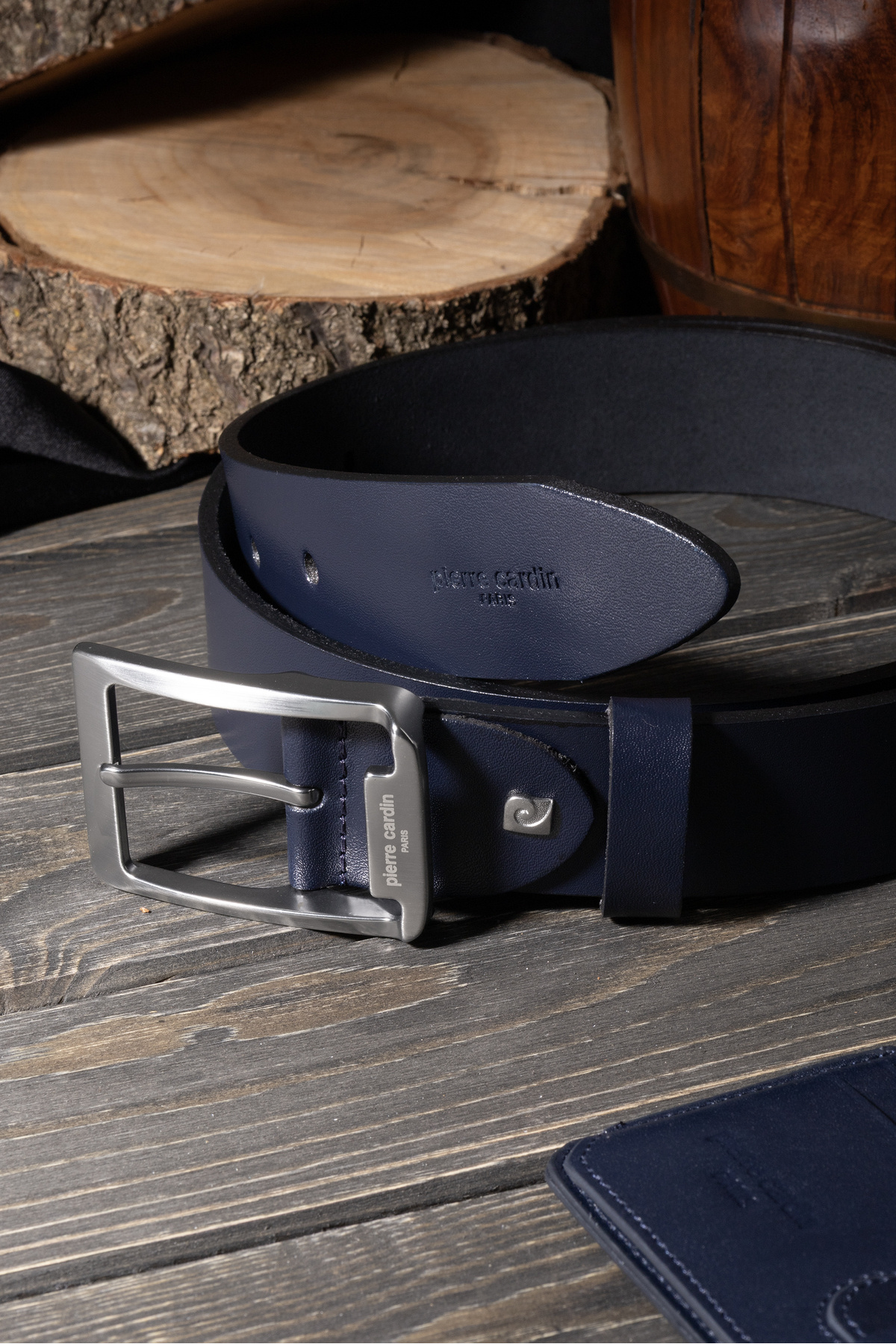 خرید اینترنتی کمربند مردانه چرمی آنالین آبی ناوی (عرض 4 سانتی متر) PCK04100U6Z برند پیر کاردین Pierre Cardin اورجینال از DERİSTİL نمایندگی ترکیه