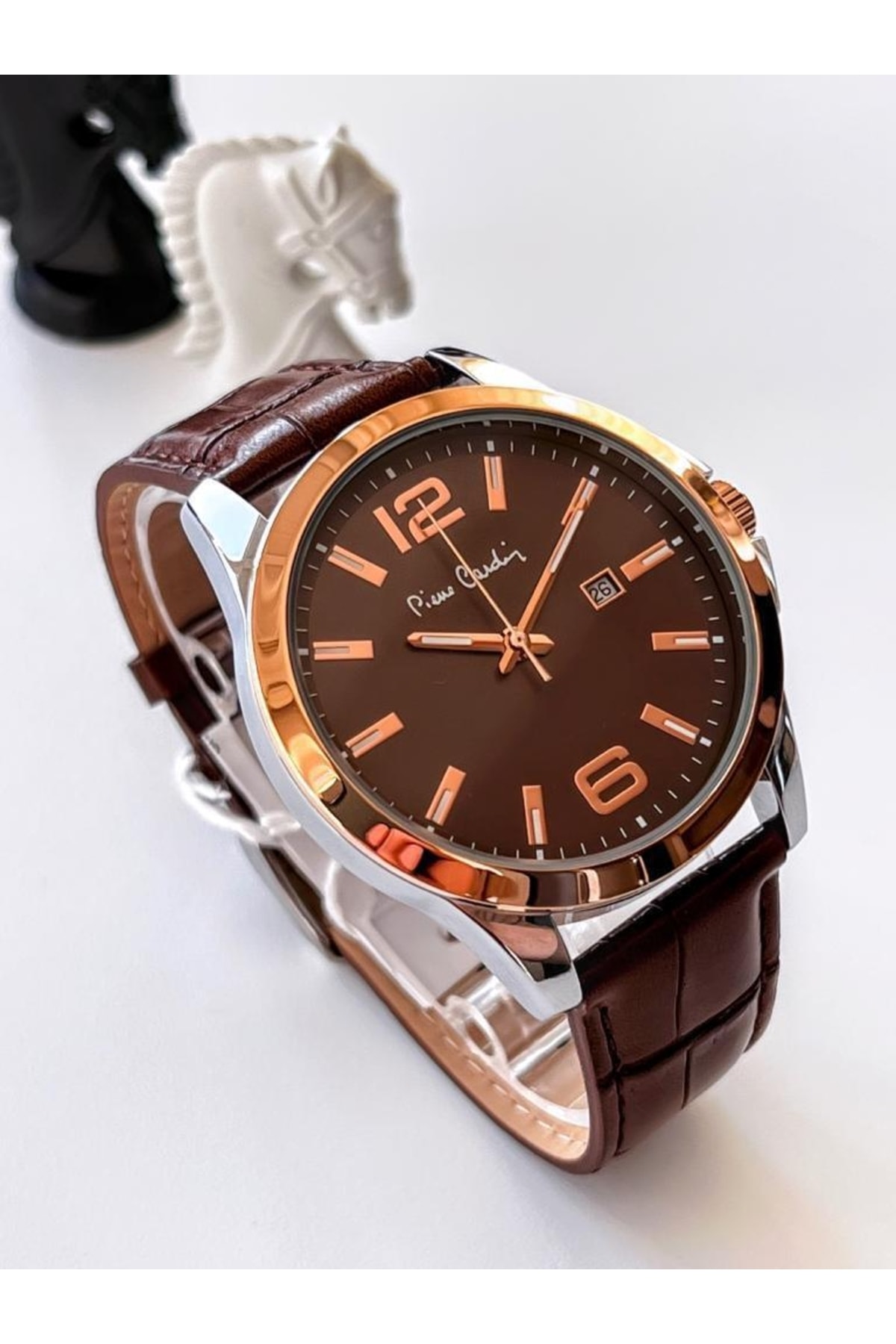 خرید اینترنتی ساعت مچی مردانه بند چرمی 800411f10k مقاوم در برابر آب تا عمق 30 متر + دستبند چشم ببر برند پیر کاردین Pierre Cardin اورجینال از Nursaat نمایندگی و فروشگاه معتبر ترکیه