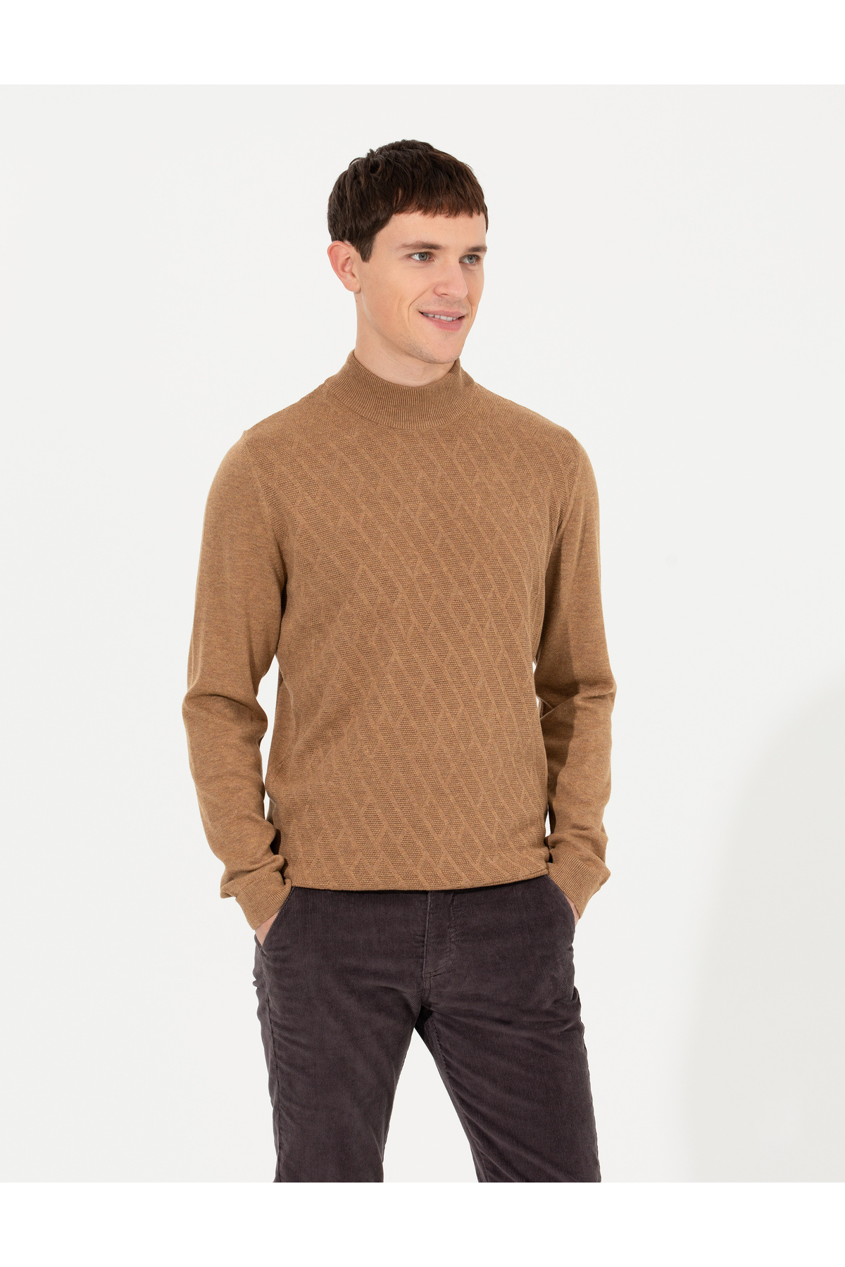 خرید اینترنتی ژاکت بافتنی نیمه یقهبند باریک Camel Melange 50265917-VR122 برند پیر کاردین Pierre Cardin اورجینال از Pierre Cardin نمایندگی ترکیه