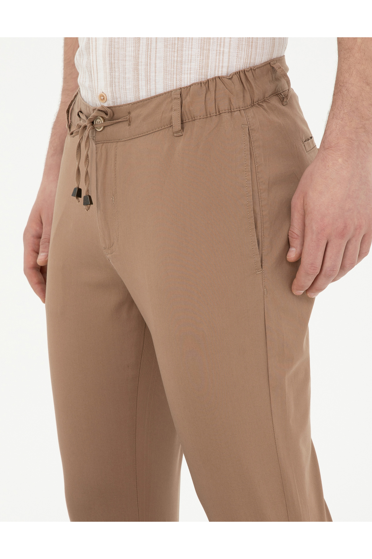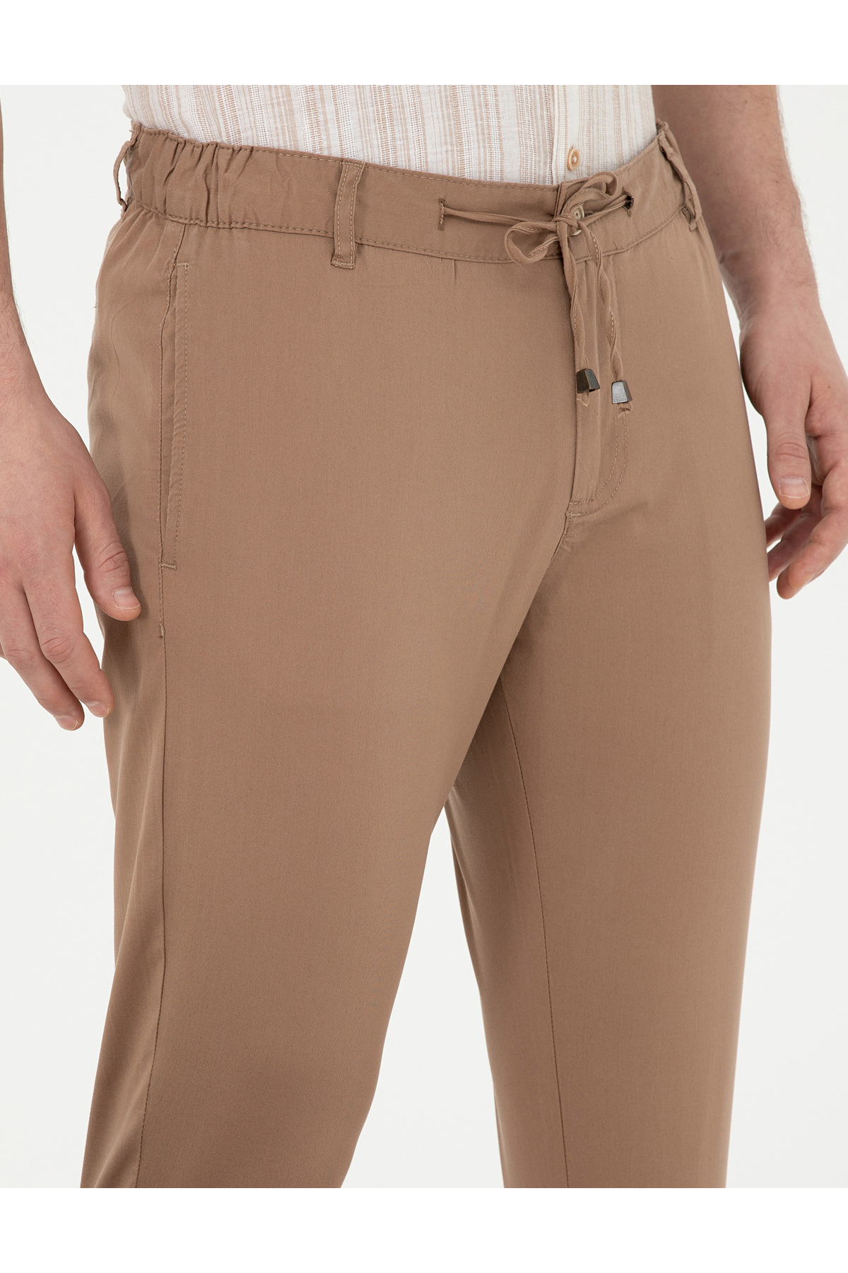 خرید اینترنتی شلوار بوم بند کشی کمر کشی الاستیک قهوه ای باریک 50285534-VR197 برند پیر کاردین Pierre Cardin اورجینال از Pierre Cardin نمایندگی ترکیه