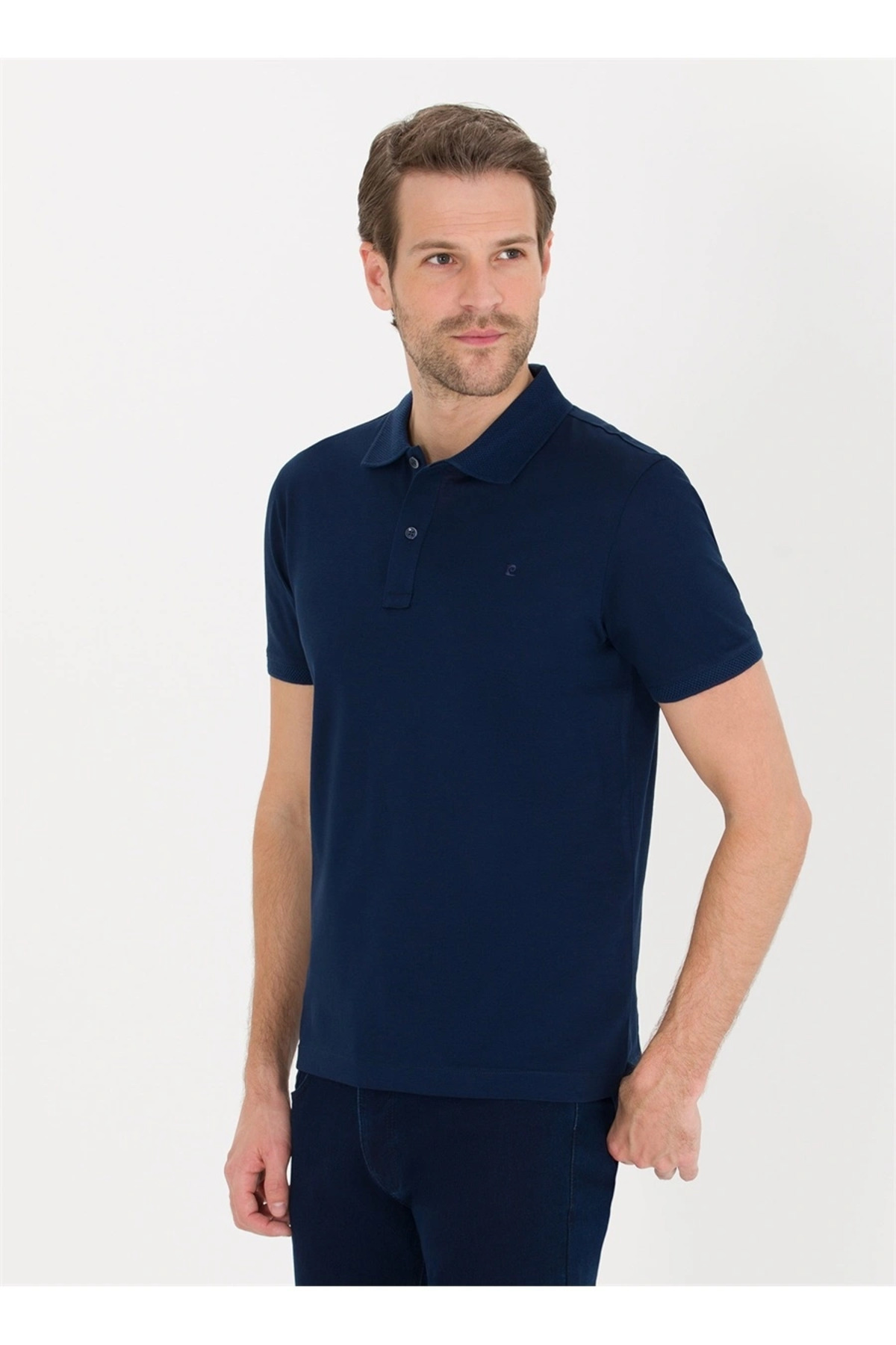 خرید اینترنتی تی شرت پولو با یقه باریک مردانه-آبی سرمه ای برند پیر کاردین Pierre Cardin اورجینال از MarkaPlus نمایندگی ترکیه