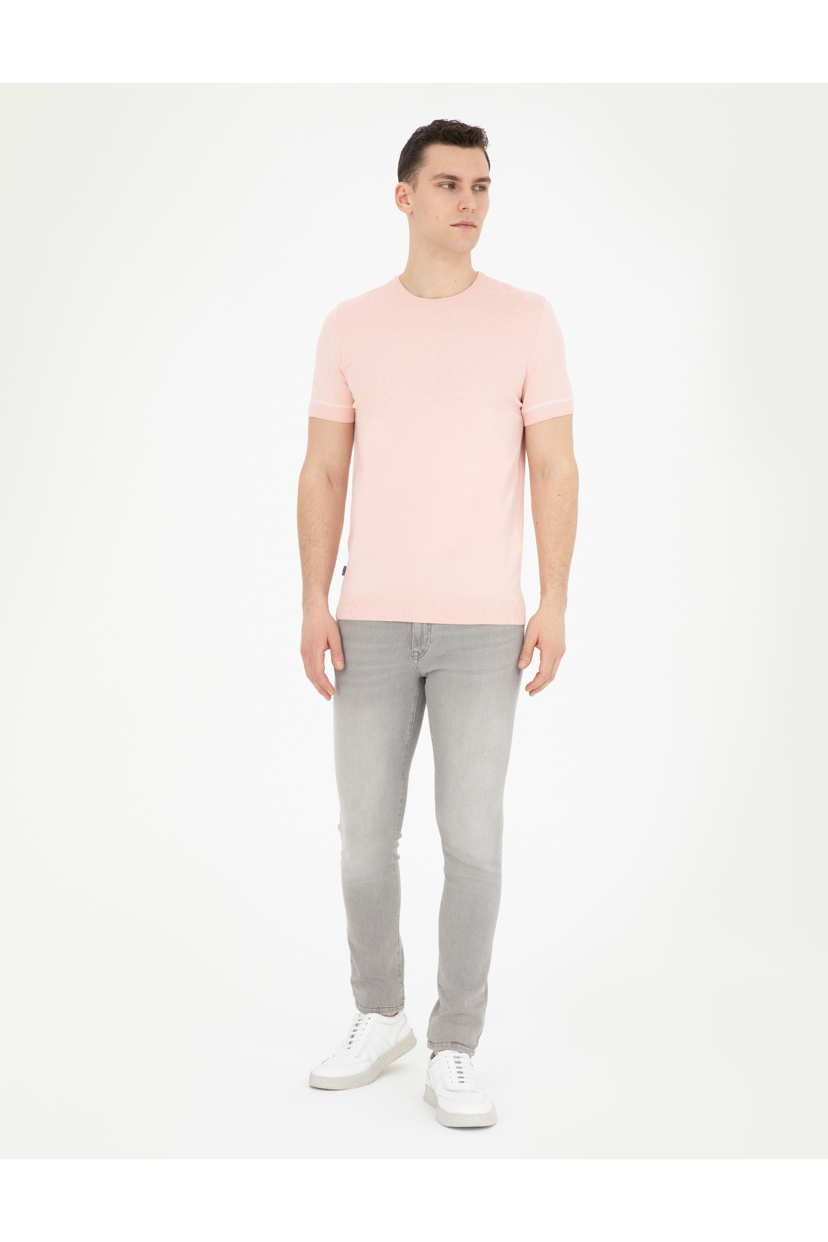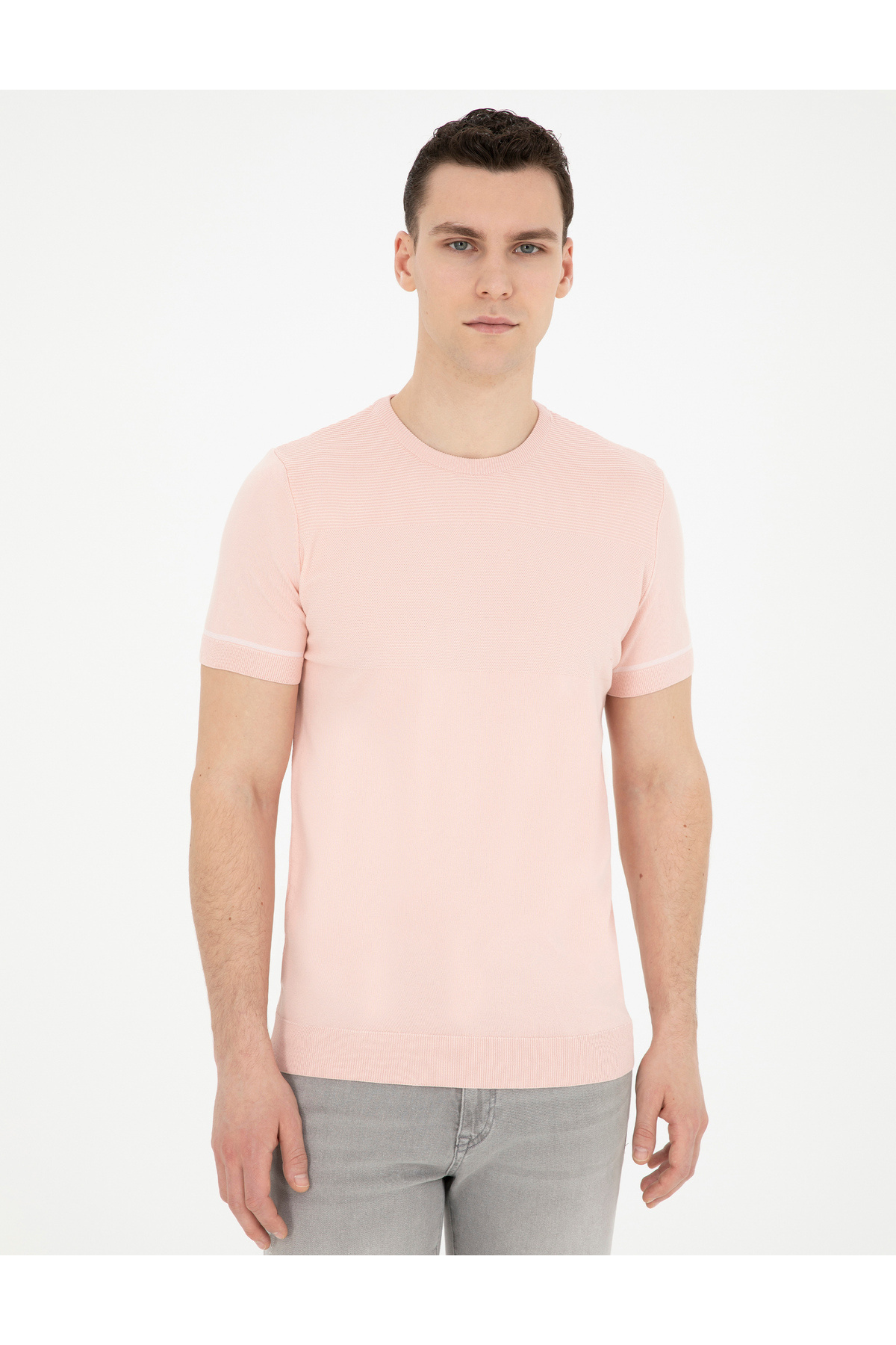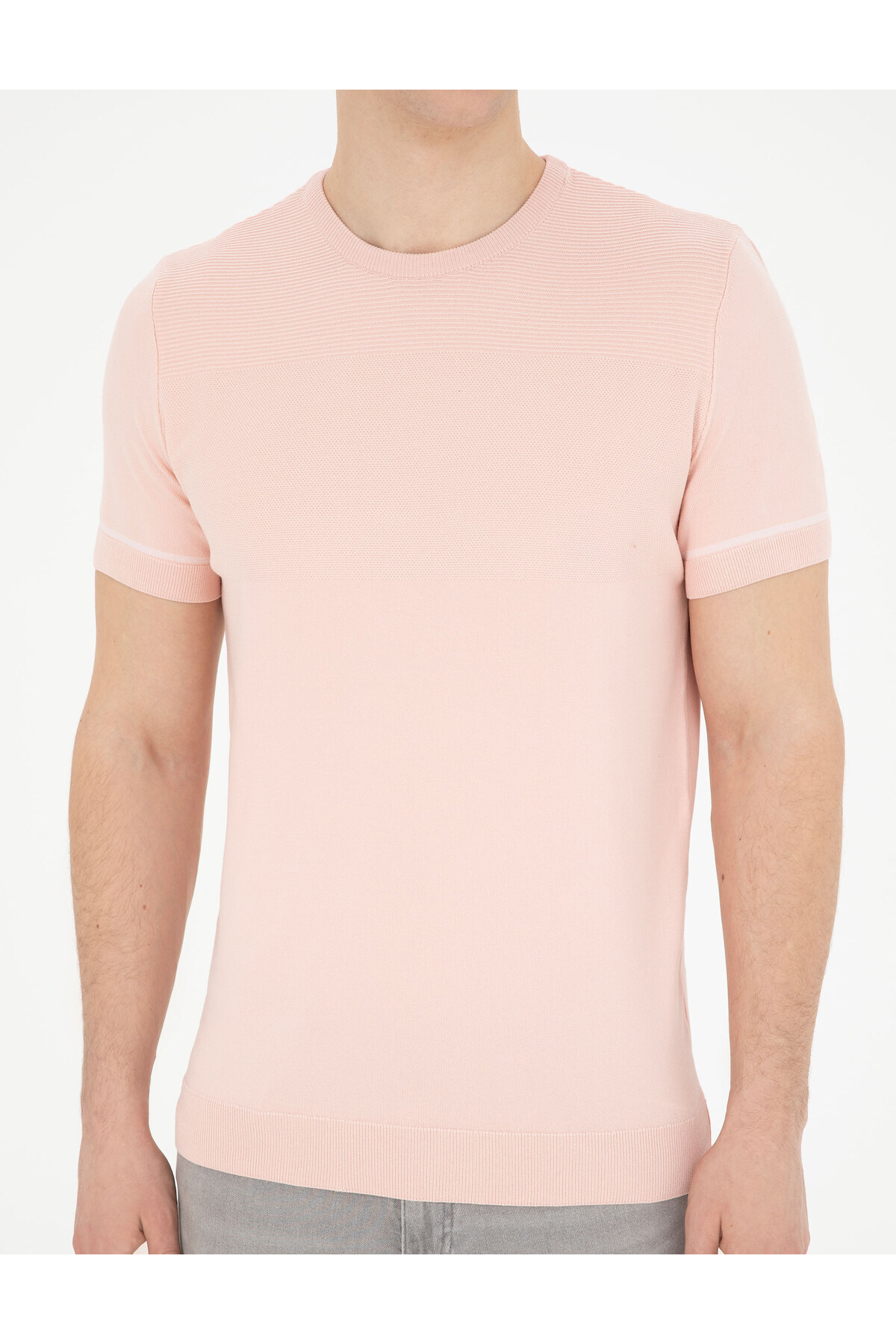 خرید اینترنتی تی شرت یقه بافتنی باریک صورتی روشن 50288117-VR078 برند پیر کاردین Pierre Cardin اورجینال از Pierre Cardin نمایندگی ترکیه