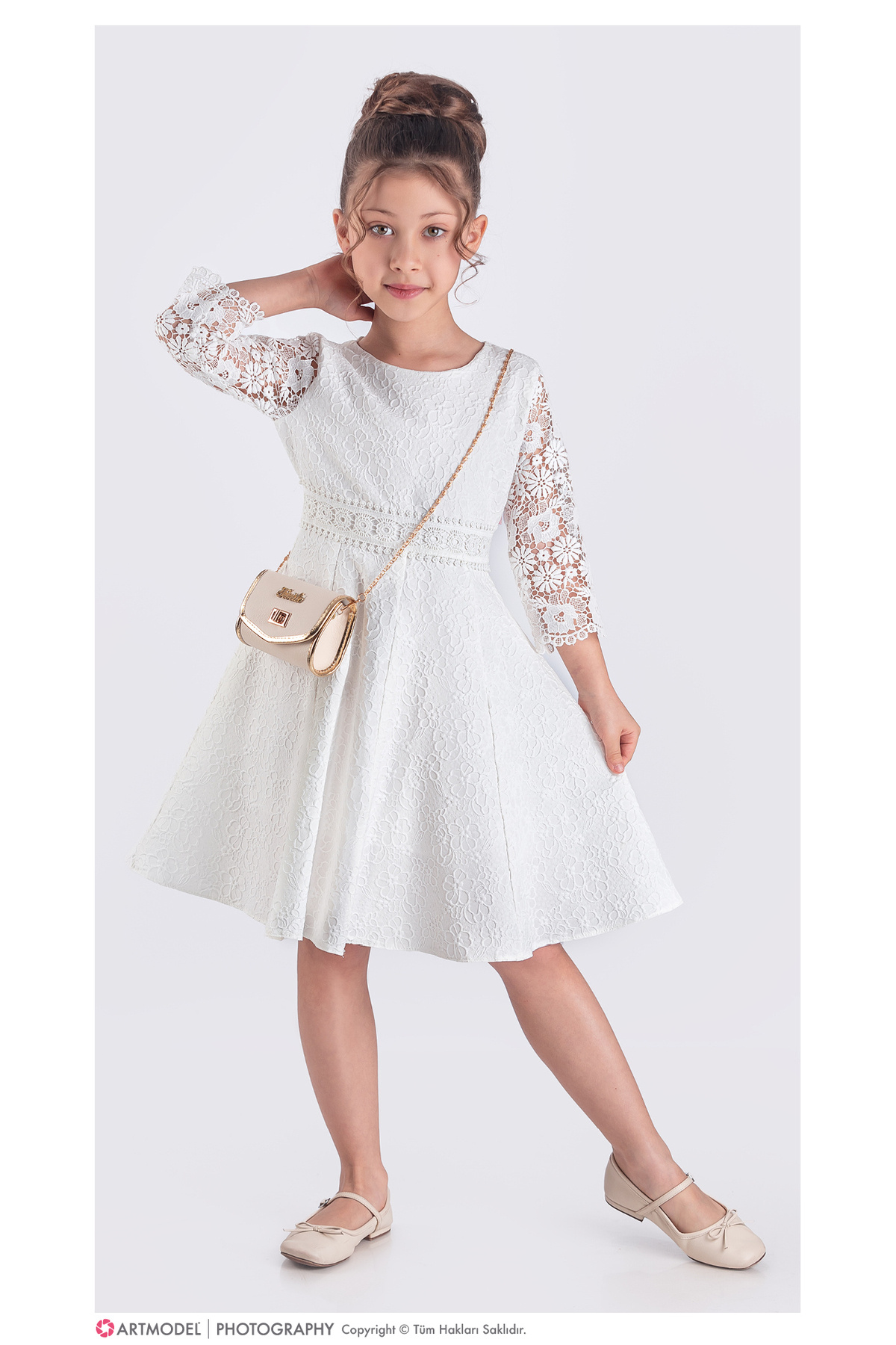 خرید اینترنتی لباس دخترانه آستین کوتاه توری مدل ELB.2723 برند Pina Kids اورجینال از Pina Kids نمایندگی و فروشگاه معتبر ترکیه