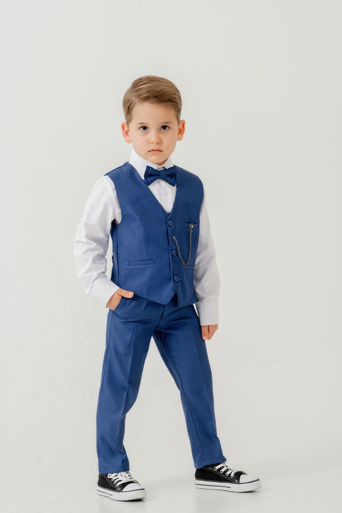 کت و شلوار اسلیم فیت پسرانه با جلیقه – ۴ تکه (جلیقه، شلوار، پیراهن، پاپیون) TE.7026 پسرانه پینا کیدز فاق نرمال آستین بلند راسته | Pina Kids TE.7026