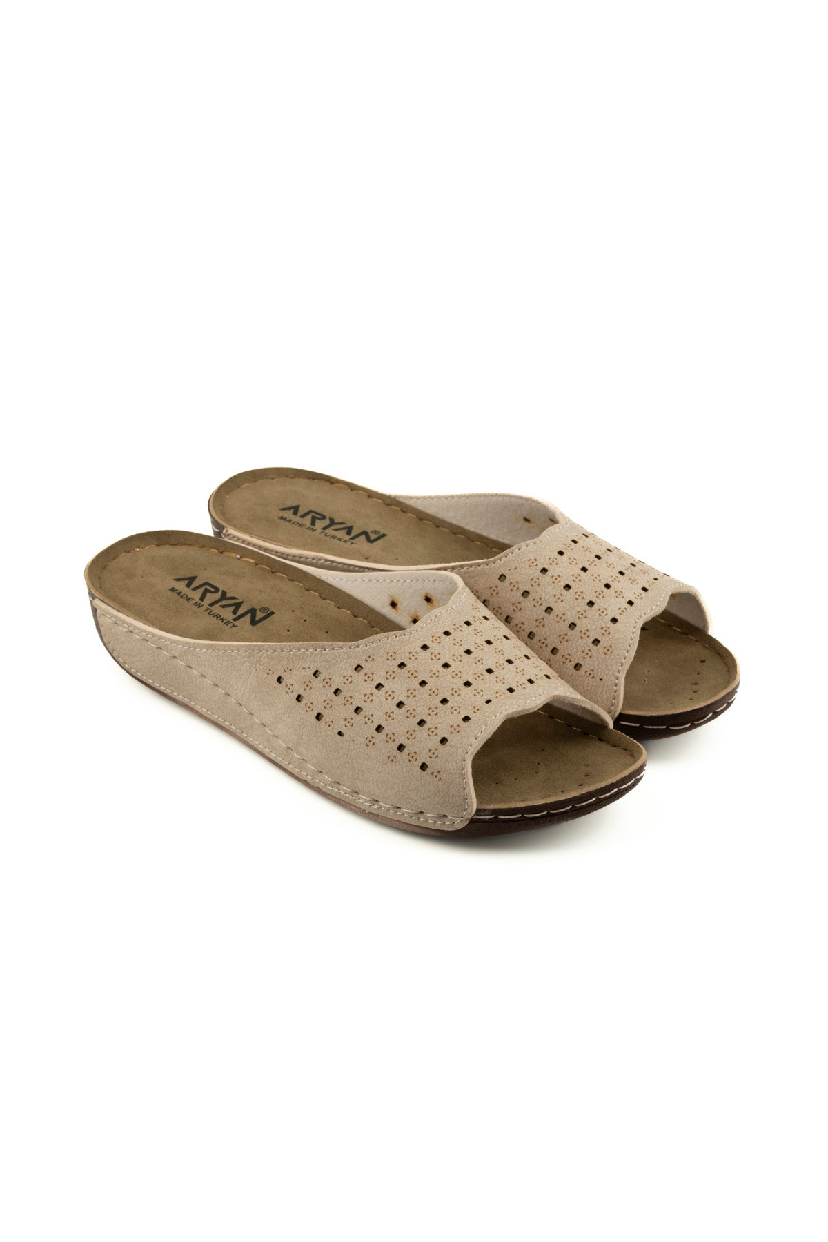 خرید اینترنتی دمپایی زنانه خانگی مشکی بژ ارتوپدی/آناتومیک پاشنه گوهای نازک با کفی گوهای – Clara برند POLOMİA اورجینال از POLOmia TERLİK نمایندگی و فروشگاه معتبر ترکیه