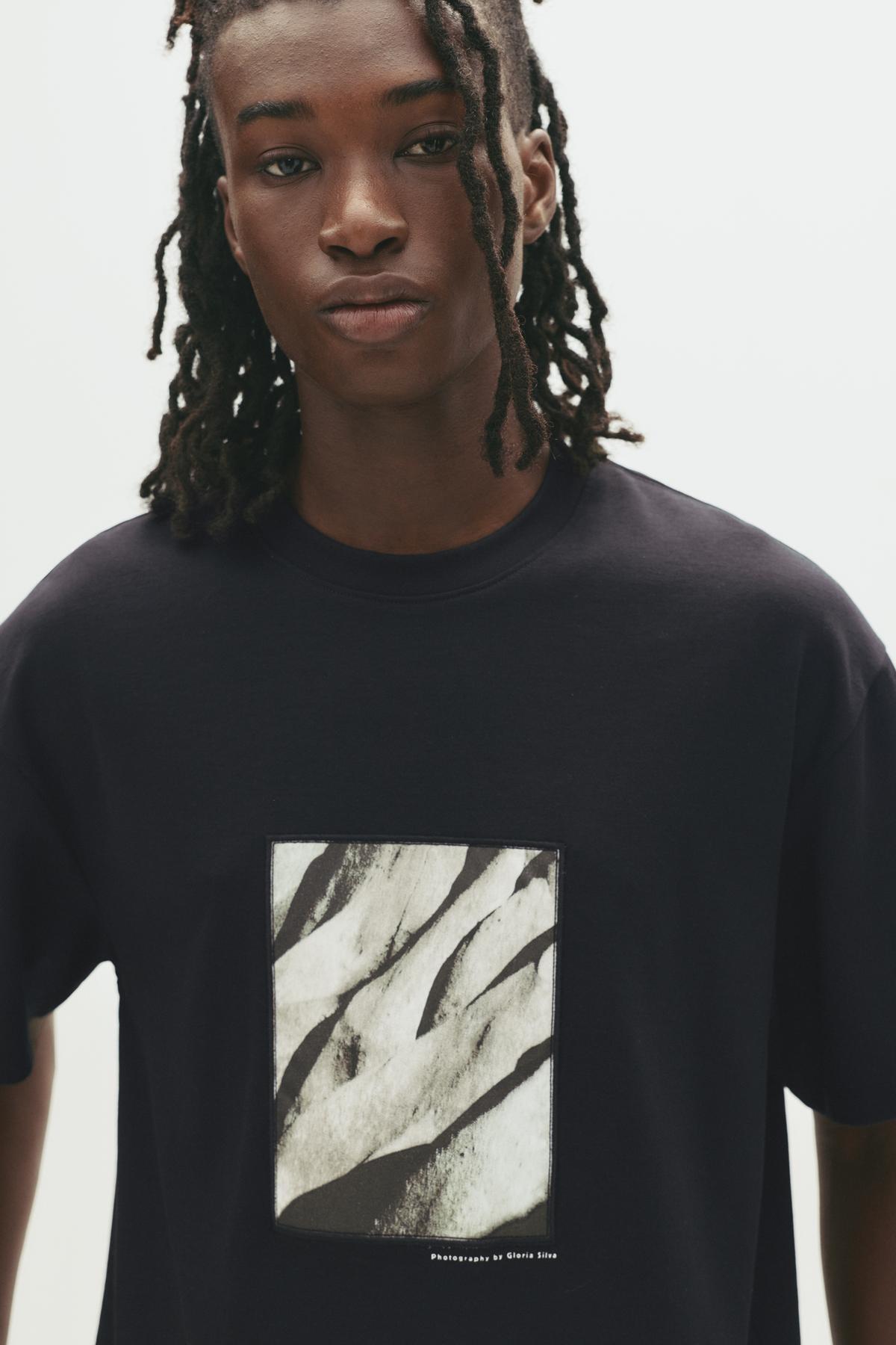 خرید اینترنتی تیشرت مشکی با چاپ عکس گلوریا سیلوا برند پول اند بیر Pull & Bear اورجینال از Pull&Bear نمایندگی ترکیه