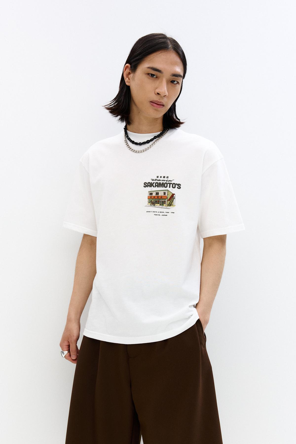 خرید اینترنتی تیشرت سفید SAKAMOTO DAYS برند پول اند بیر Pull & Bear اورجینال از Pull&Bear نمایندگی و فروشگاه معتبر ترکیه