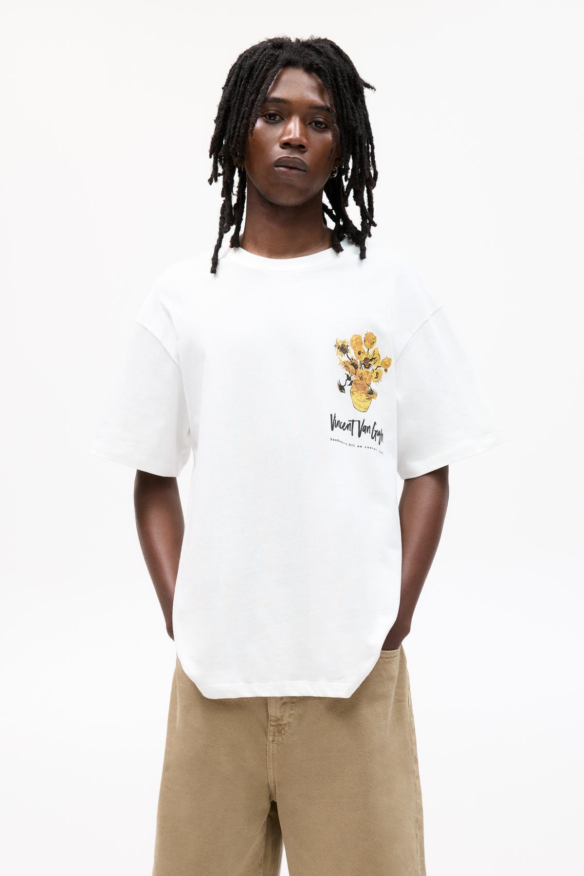 خرید اینترنتی تیشرت طرح گل آفتابگردان ون گوگ برند پول اند بیر Pull & Bear اورجینال از Pull&Bear نمایندگی ترکیه