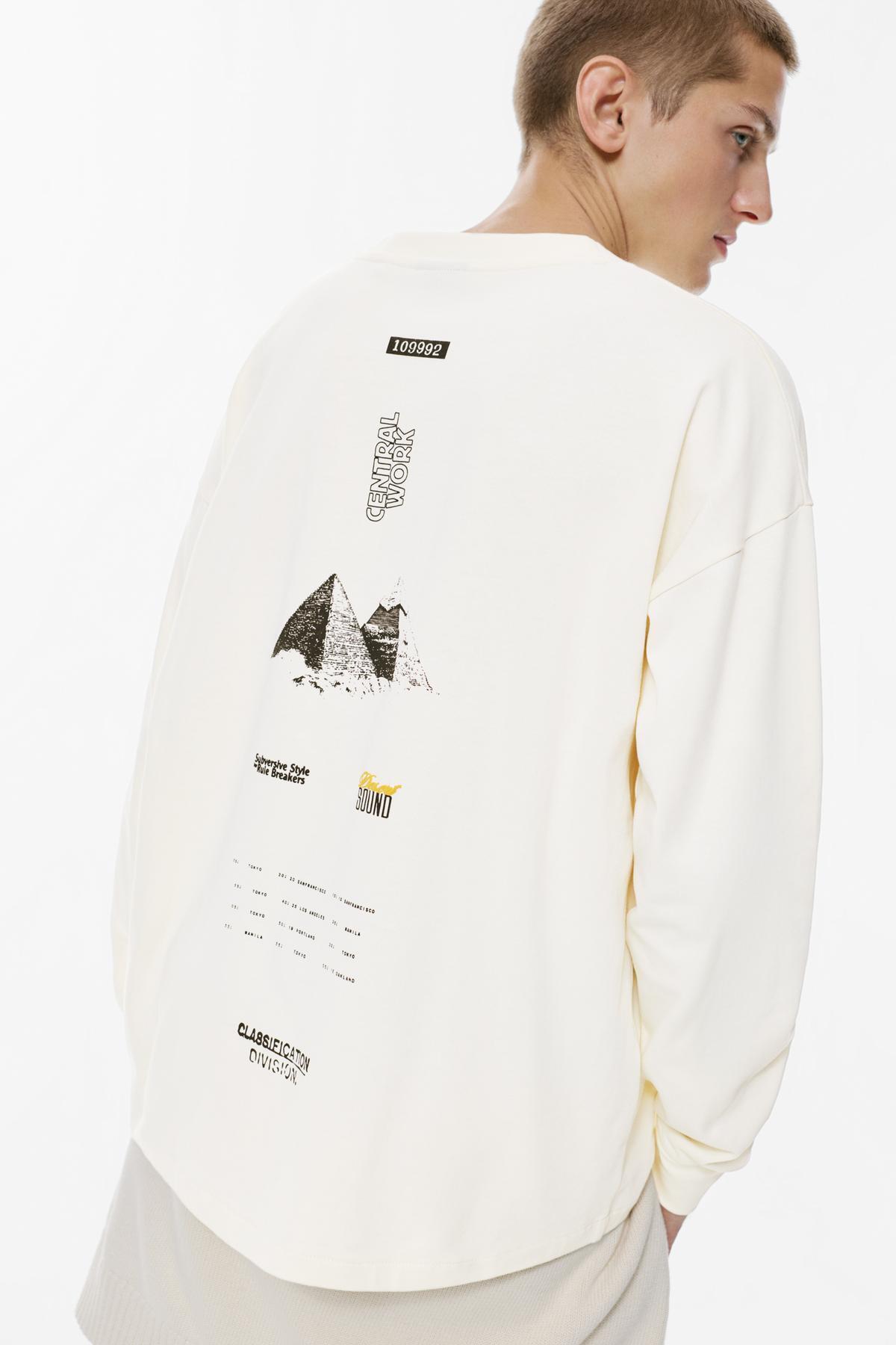 تی شرت مردانه پول اند بیر آستین بلند طرح دار | Pull & Bear 7152542
