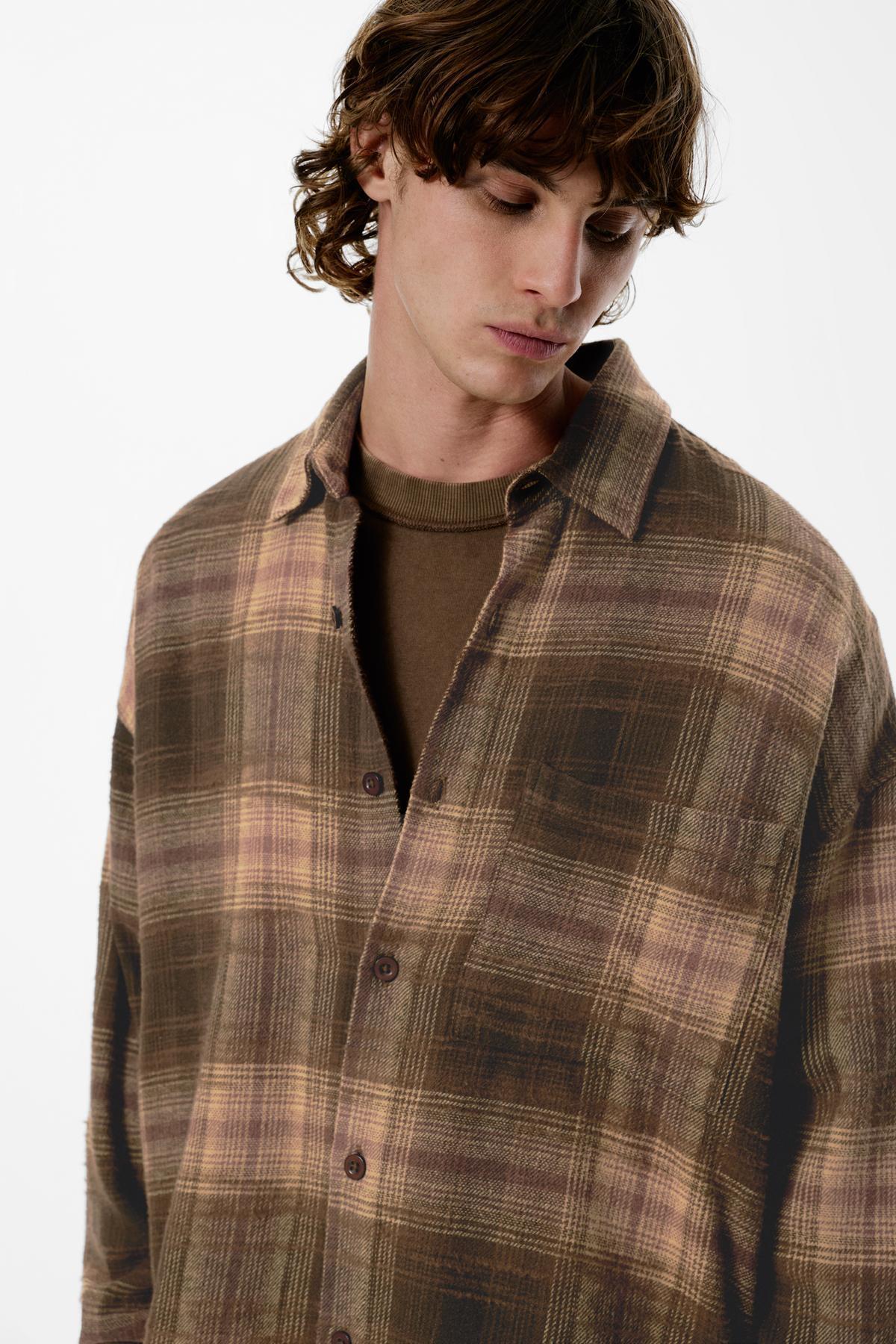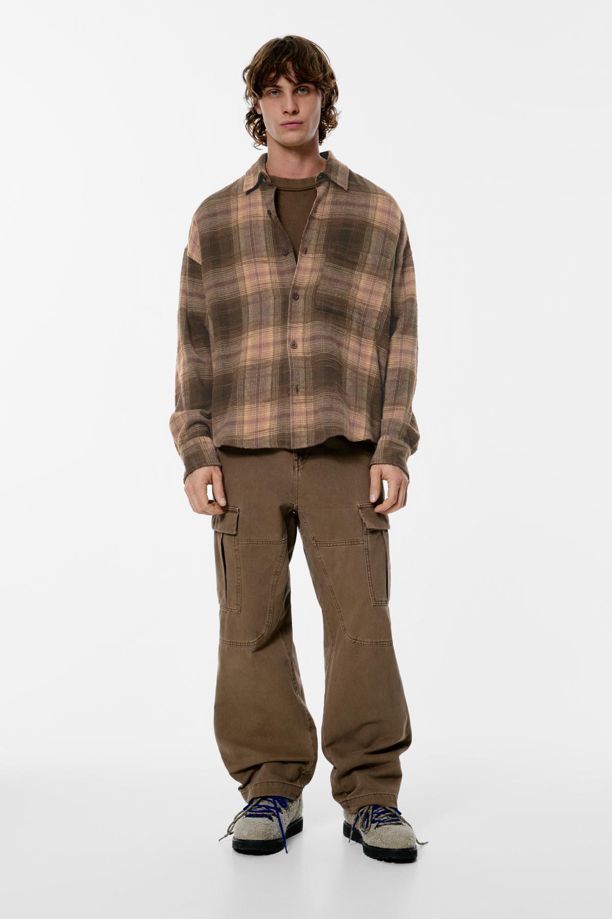 پیراهن مردانه پول اند بیر آستین بلند شطرنجی | Pull & Bear 7472565