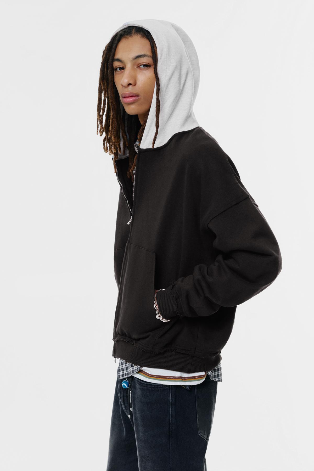 خرید اینترنتی سویشرت زیپدار کلاهدار با رنگ متضاد برند پول اند بیر Pull & Bear اورجینال از Pull&Bear نمایندگی و فروشگاه معتبر ترکیه