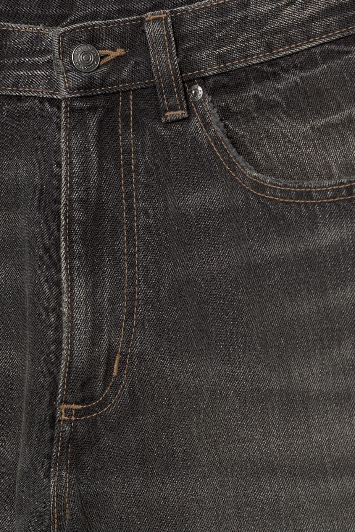 شلوار جین گشاد پنج جیب، حلقه کمربند، دکمه و زیپ.