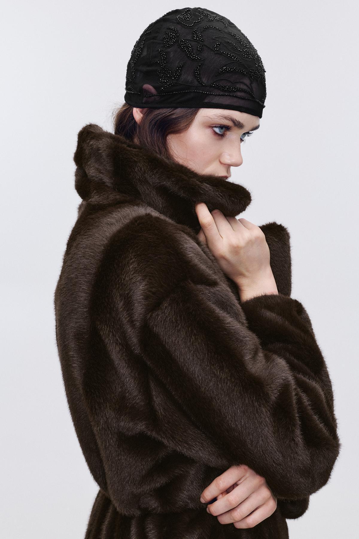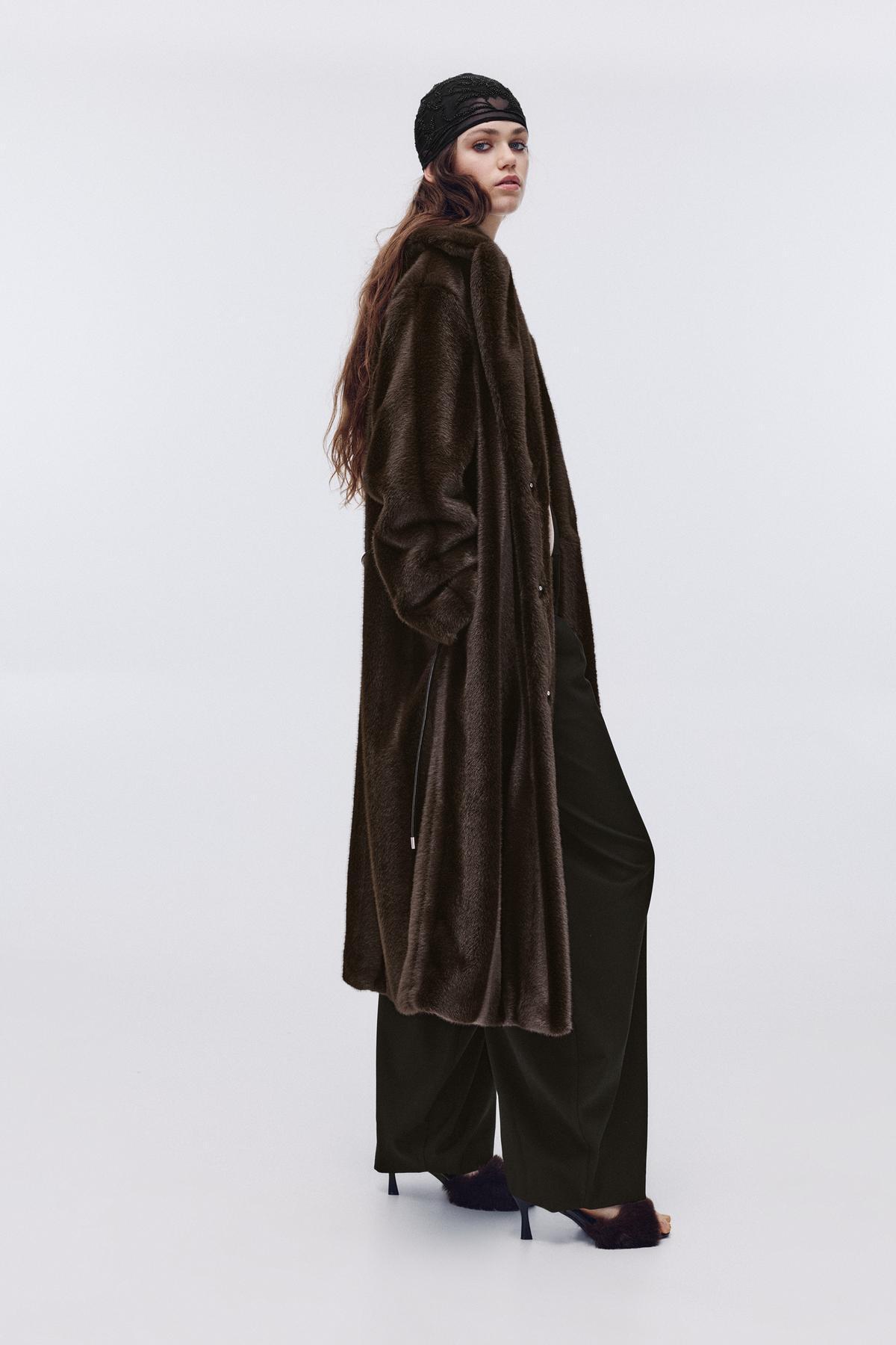 خرید اینترنتی کت خز مصنوعی بلند با کمربند برند پول اند بیر Pull & Bear اورجینال از Pull&Bear نمایندگی ترکیه