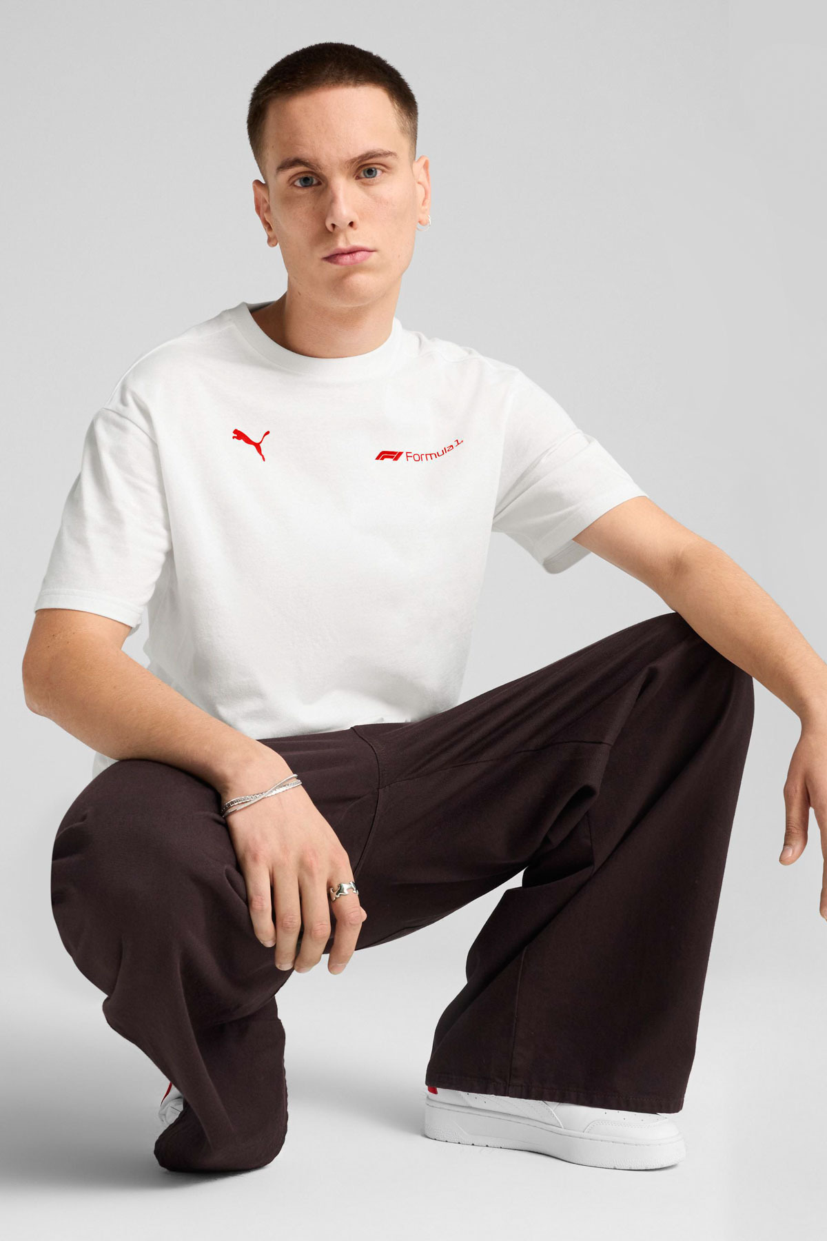خرید اینترنتی تی شرت آستین کوتاه مردانه سفید F1 ESS+ گرافیکی برند پوما Puma اورجینال از FLO نمایندگی ترکیه