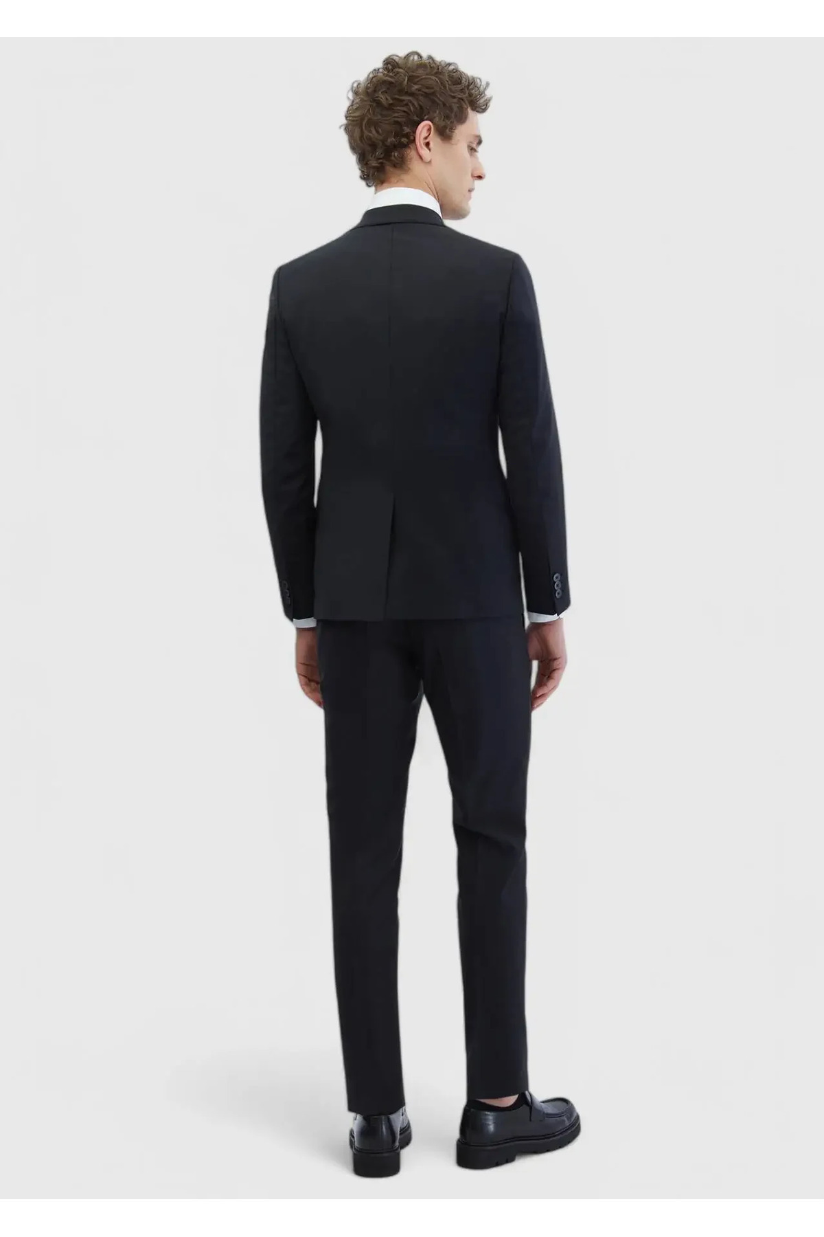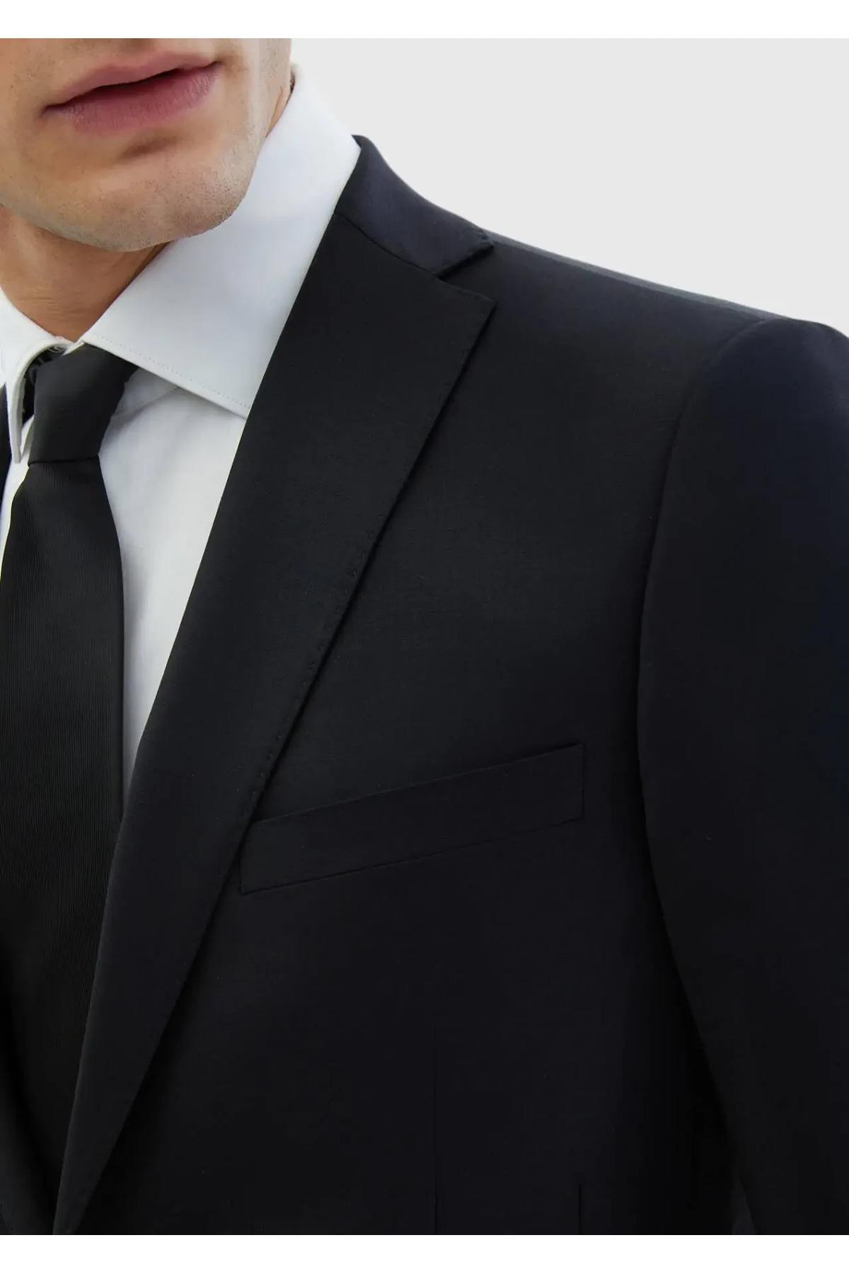 خرید اینترنتی کت و شلوار ترکیبی پشمی باریک مد ساده مشکی برند رمزی Ramsey اورجینال از RAMSEY نمایندگی ترکیه