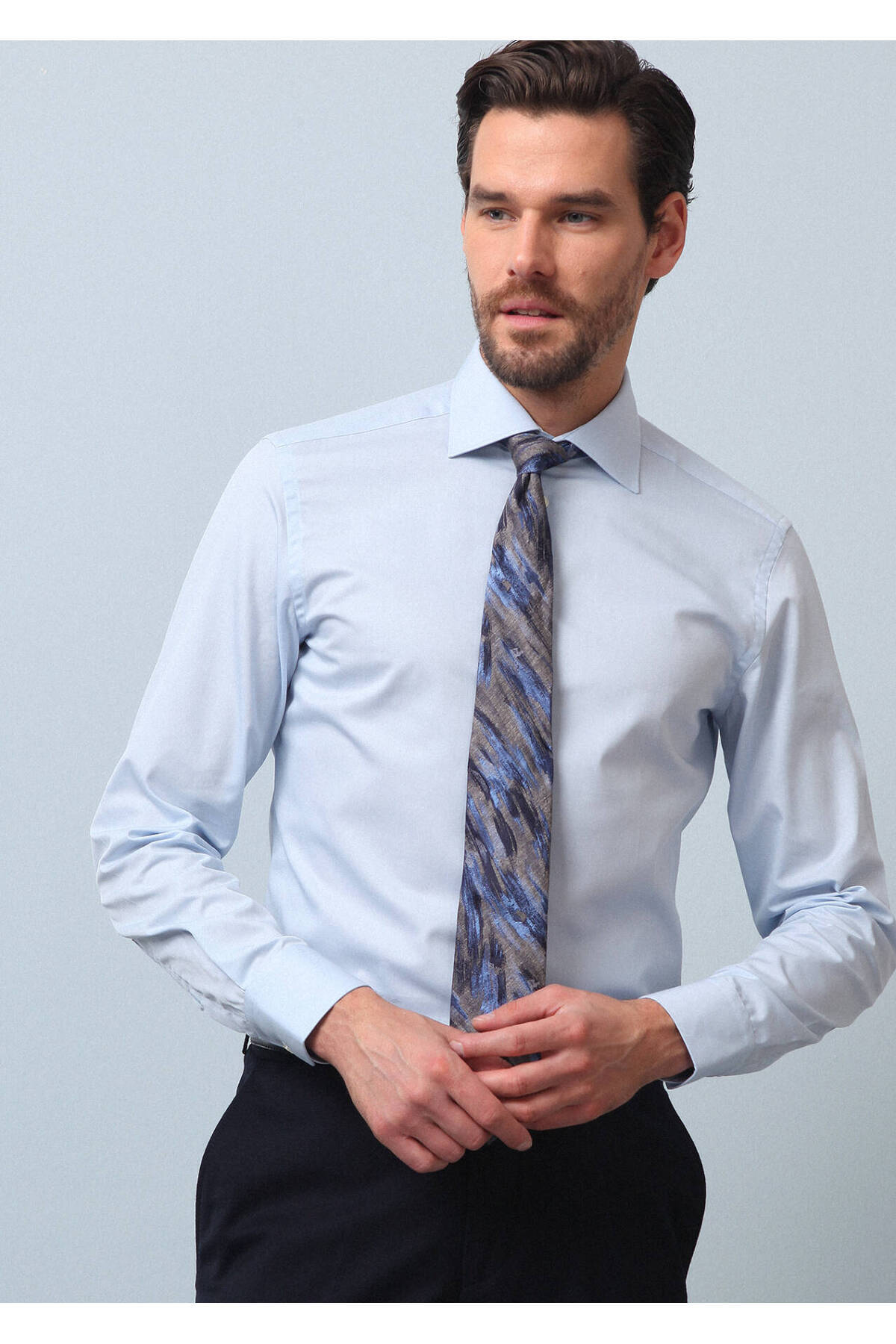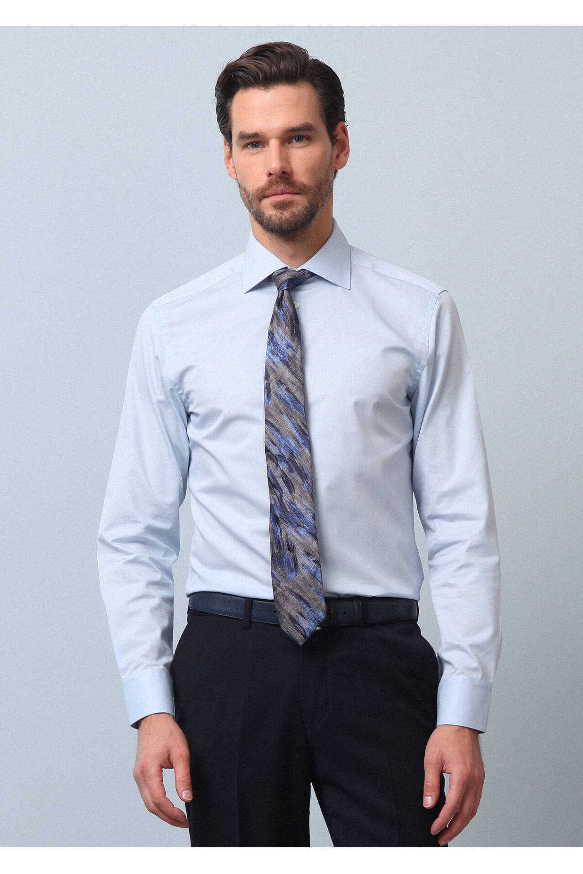 خرید اینترنتی پیراهن ترکیبی پنبهای کلاسیک با بافت ساده آبی برند رمزی Ramsey اورجینال از RAMSEY نمایندگی ترکیه