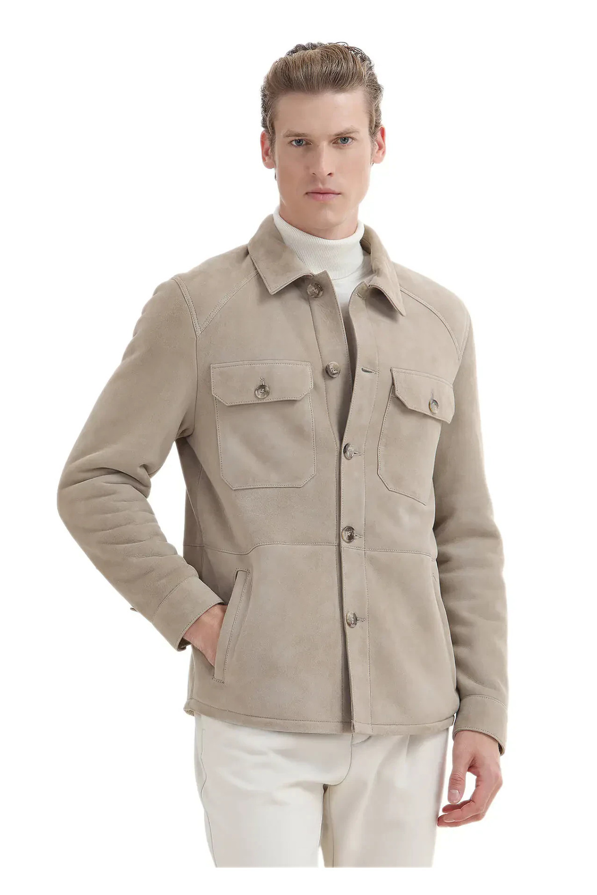 خرید اینترنتی کاپشن چرمی خز معمولی یقه پیراهن بژ برند رمزی Ramsey اورجینال از RAMSEY نمایندگی ترکیه