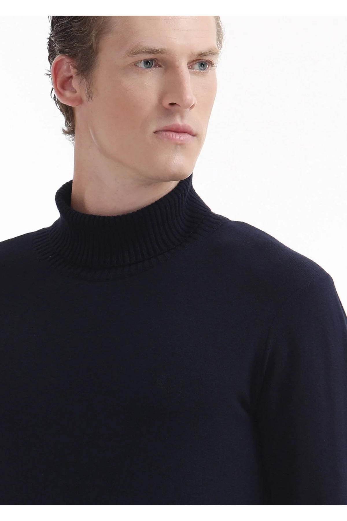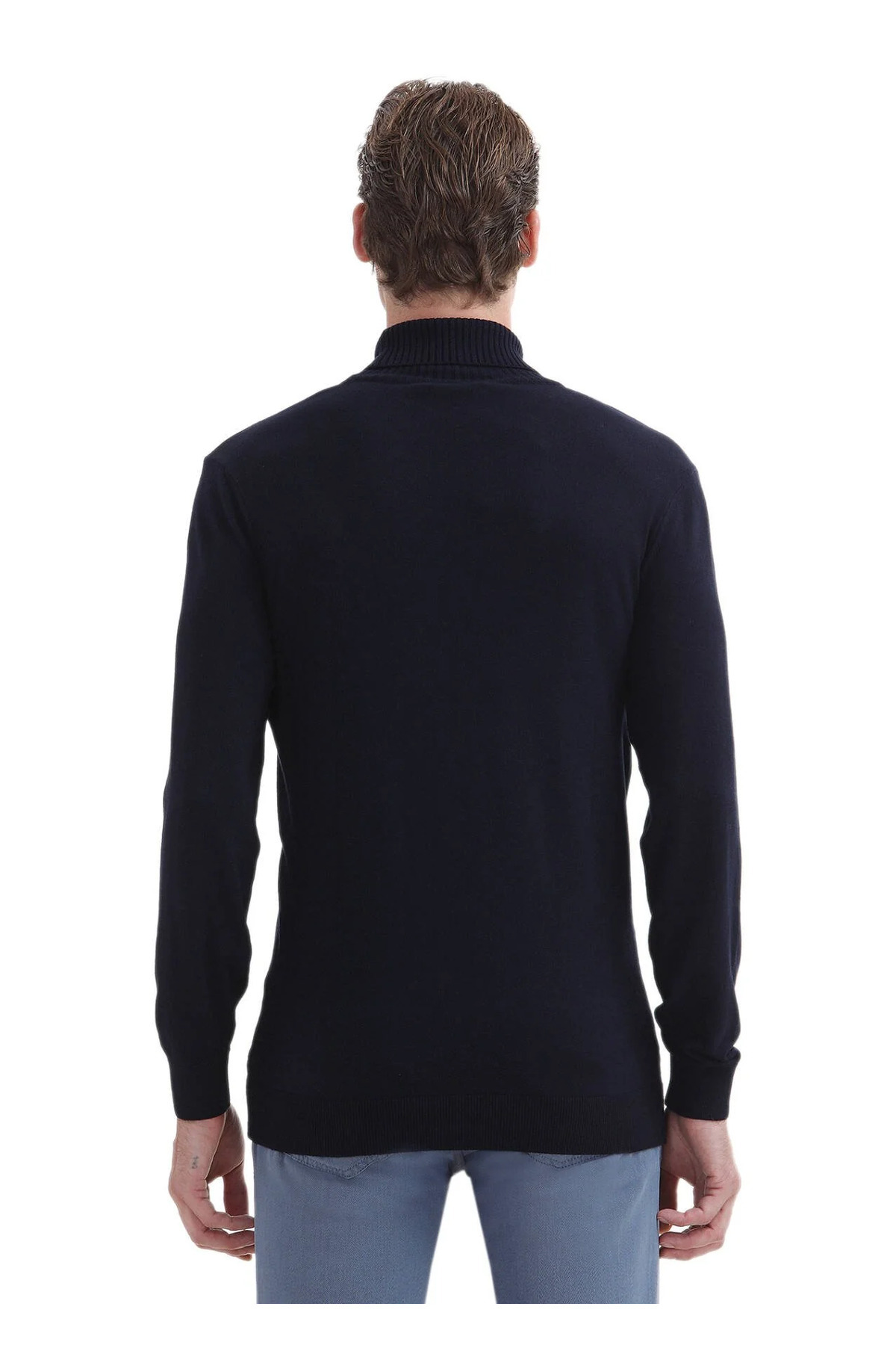 خرید اینترنتی ژاکت بافتنی ترکیبی پشمی ساده بافتنی نیمه یقهبند آبی دریایی برند رمزی Ramsey اورجینال از RAMSEY نمایندگی ترکیه