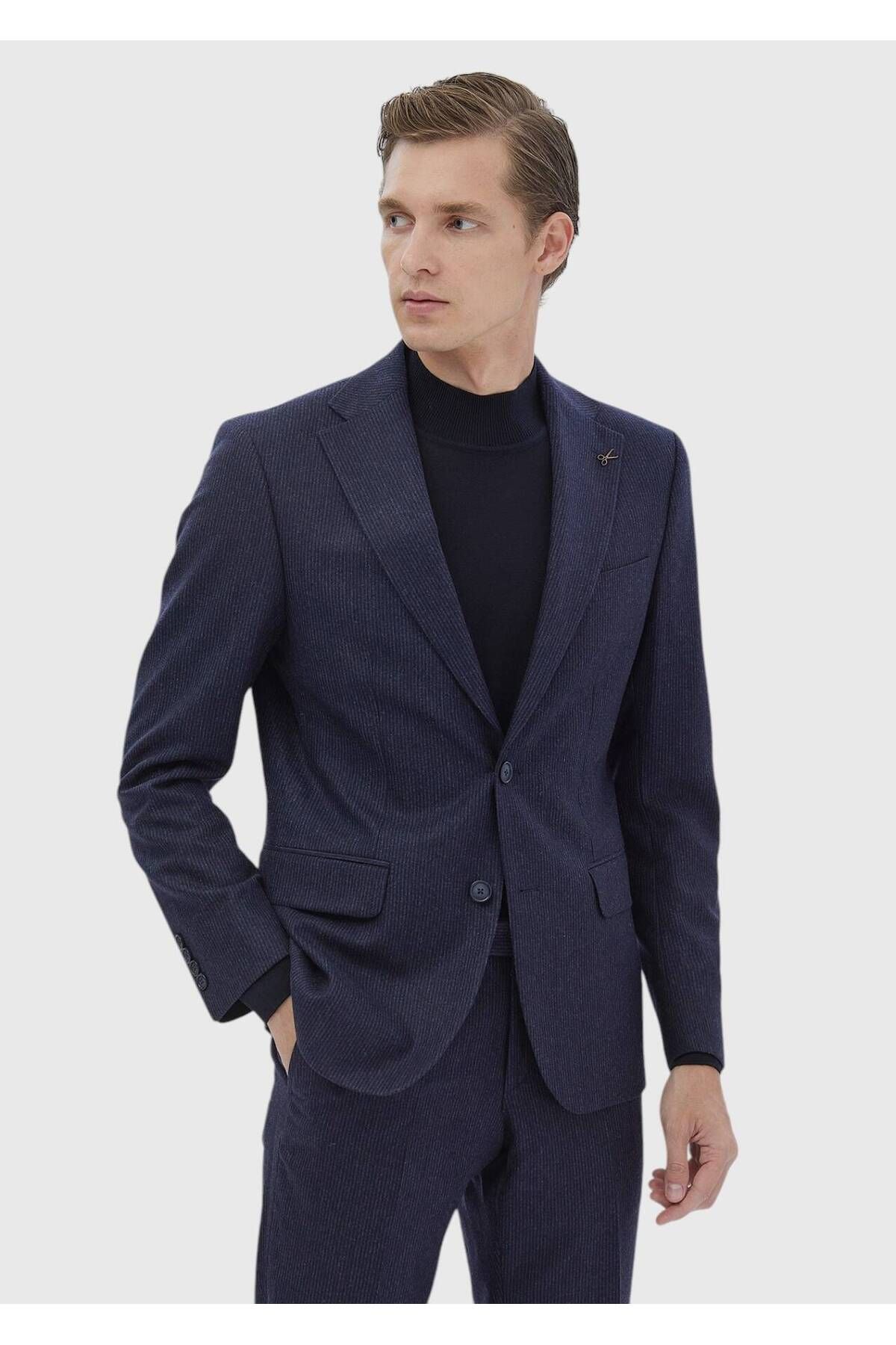 خرید اینترنتی کت و شلوار ترکیبی پشمی باریک باریک راه راه آبی سرمه ای برند رمزی Ramsey اورجینال از RAMSEY نمایندگی ترکیه