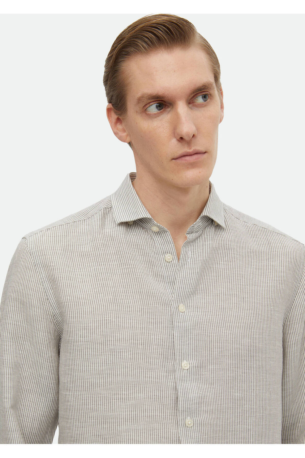خرید اینترنتی پیراهن ترکیبی کتان گاه به گاه بافته شده با راه راه آنتراسیت برند رمزی Ramsey اورجینال از RAMSEY نمایندگی ترکیه