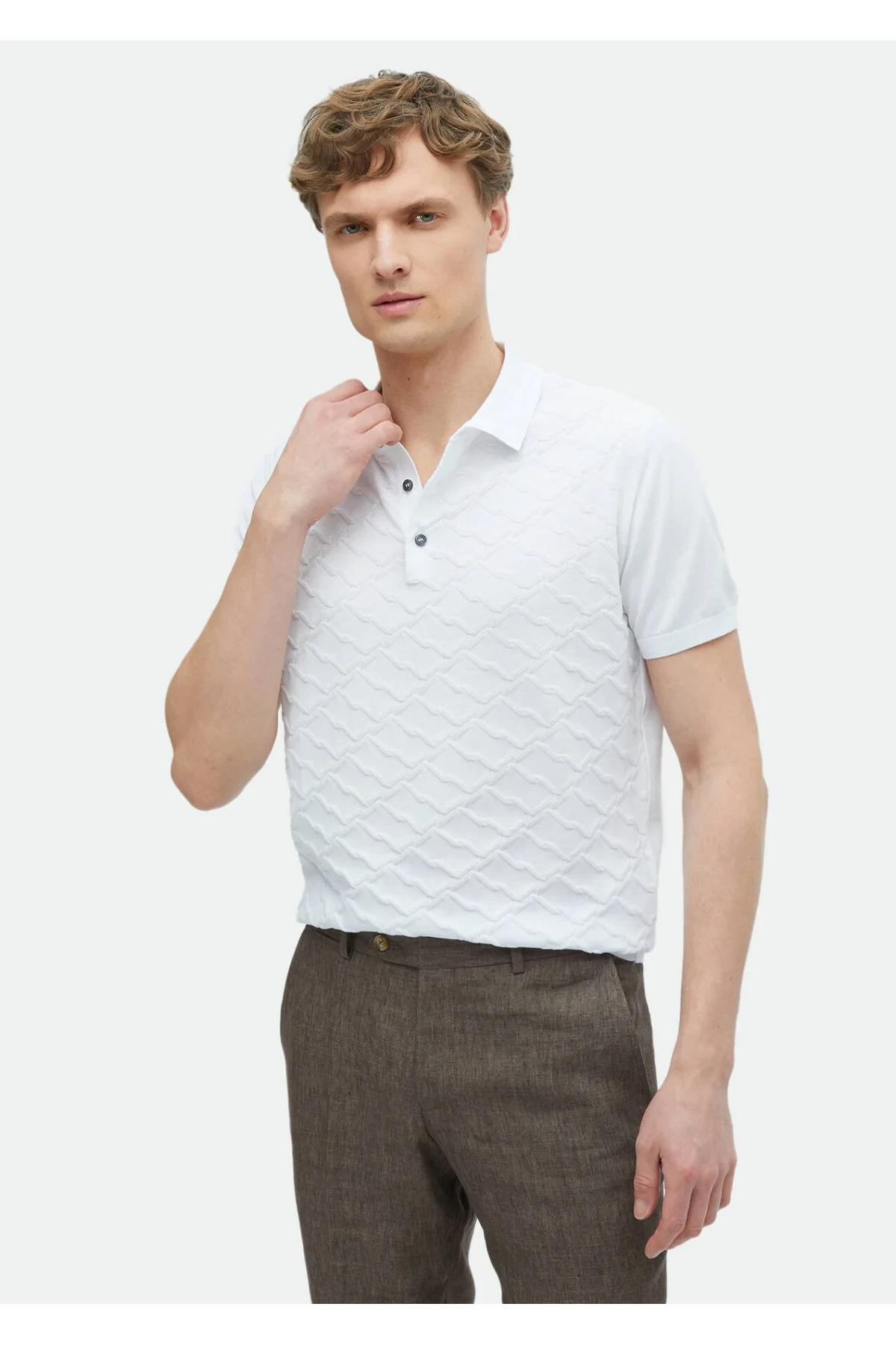 خرید اینترنتی پلیور ژاکارد یقه پولو سفید 100% نخی برند رمزی Ramsey اورجینال از RAMSEY نمایندگی ترکیه