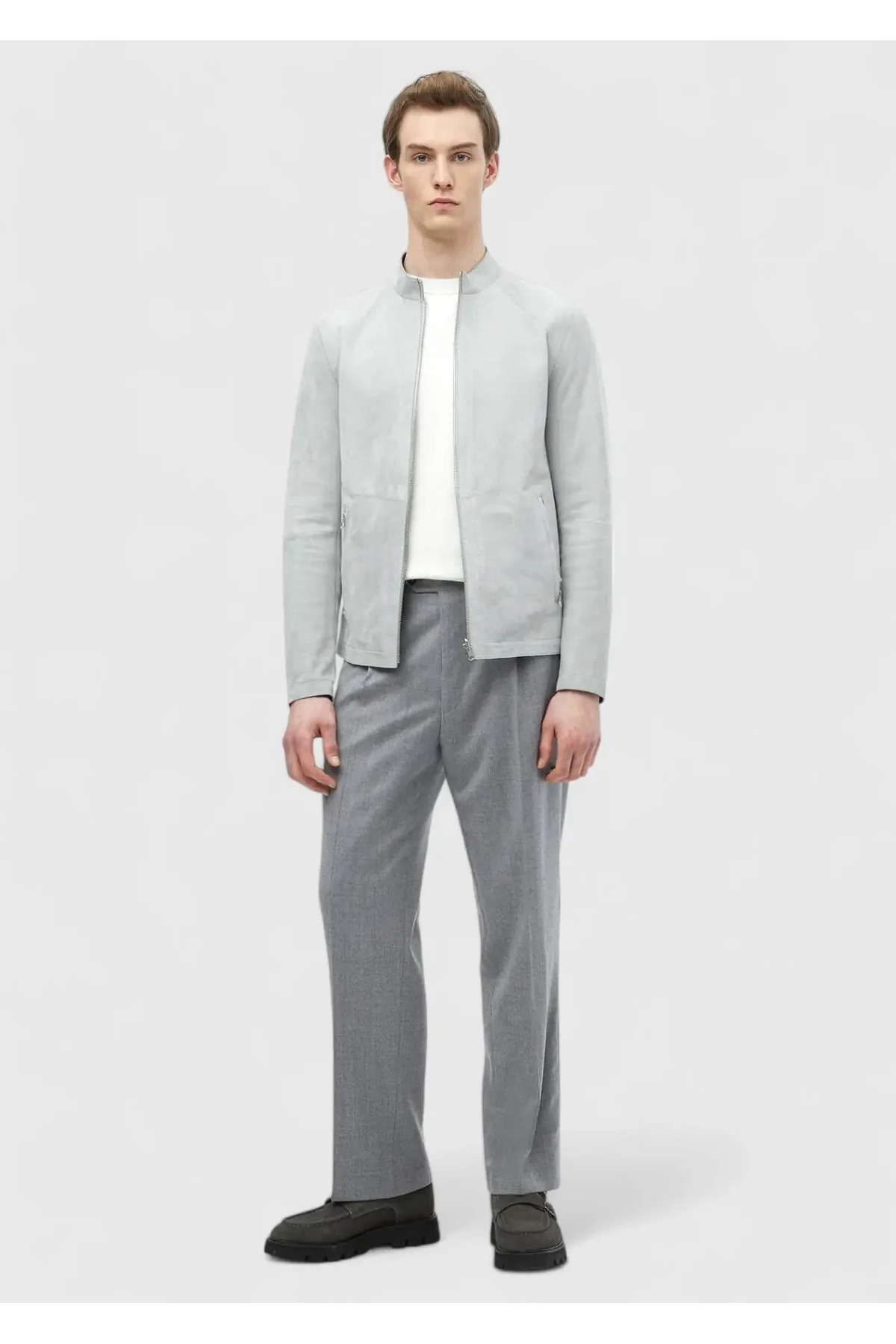 خرید اینترنتی کاپشن چرمی دو رو یقه جیر معمولی با رنگ خاکستری روشن برند رمزی Ramsey اورجینال از RAMSEY نمایندگی ترکیه