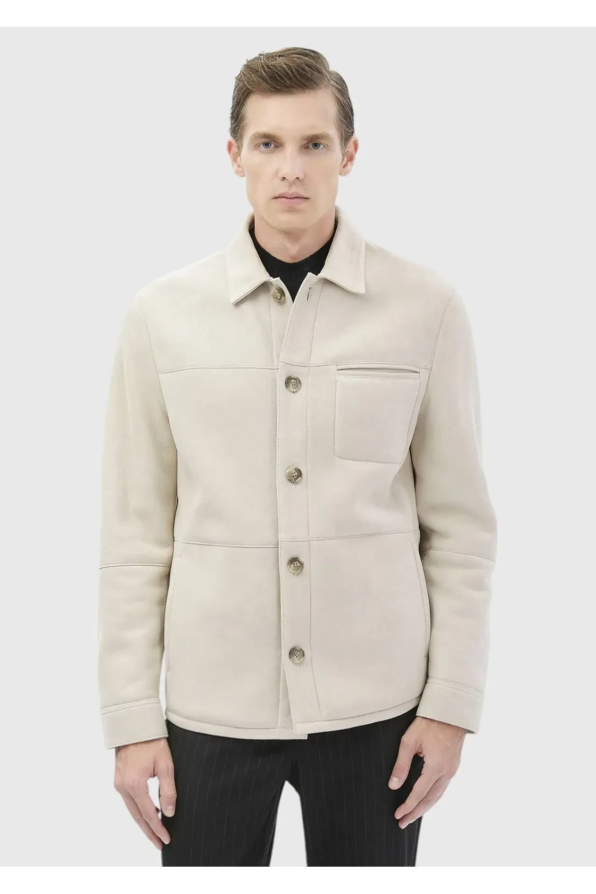 خرید اینترنتی کت چرمی خز معمولی یقه پیراهن بژ برند رمزی Ramsey اورجینال از RAMSEY نمایندگی ترکیه