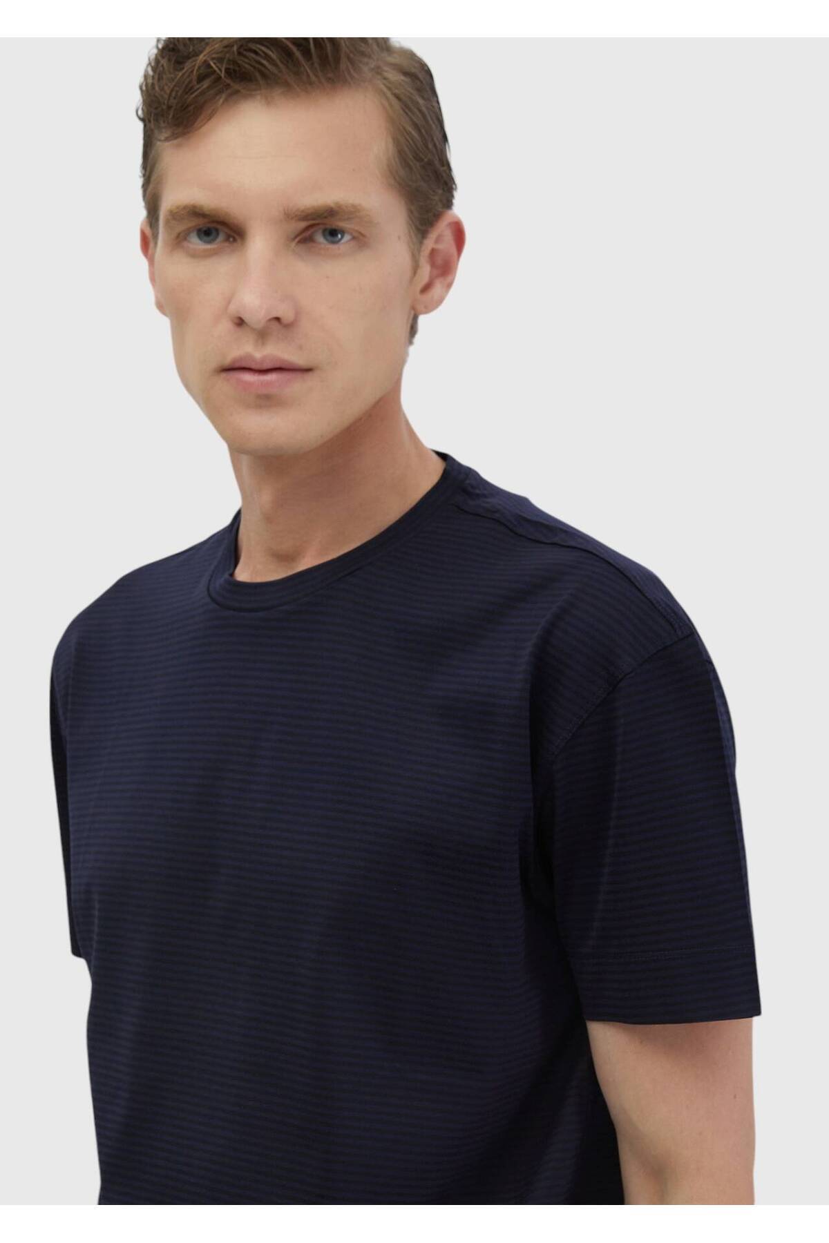 خرید اینترنتی تی شرت یقه خدمه راه راه آبی سرمه ای 100% پنبه برند رمزی Ramsey اورجینال از RAMSEY نمایندگی ترکیه