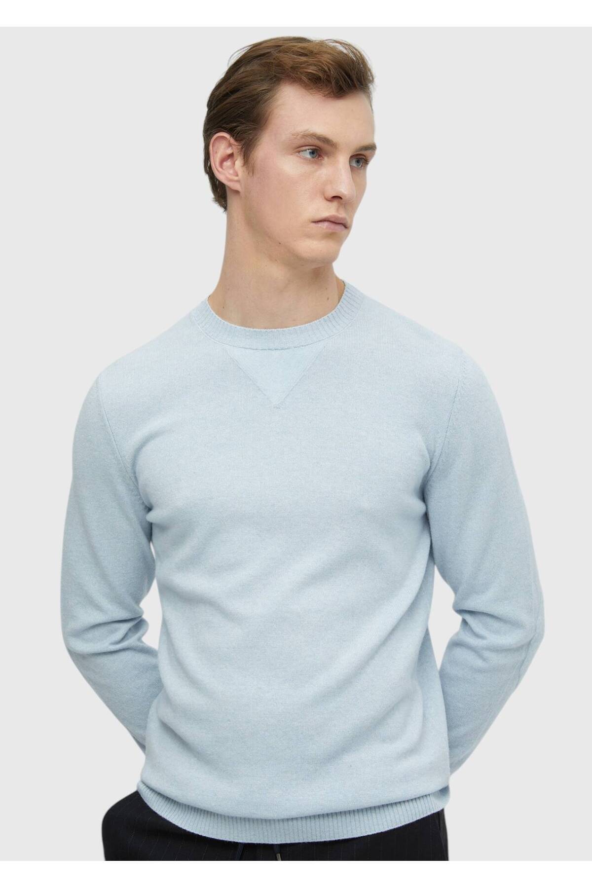 خرید اینترنتی یقه یقه آبی روشن ژاکت بافتنی پشمی ساده بافتنی برند رمزی Ramsey اورجینال از RAMSEY نمایندگی ترکیه