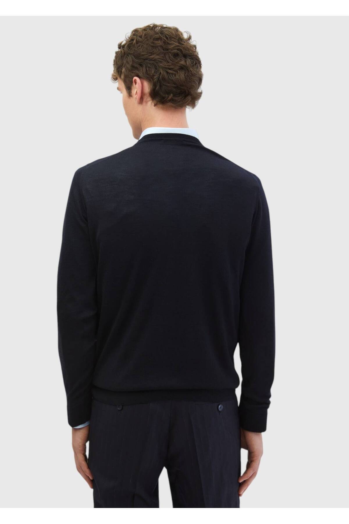 خرید اینترنتی پلیور ترکیبی پشمی ساده بافتنی یقه آبی نیروی دریایی برند رمزی Ramsey اورجینال از RAMSEY نمایندگی ترکیه